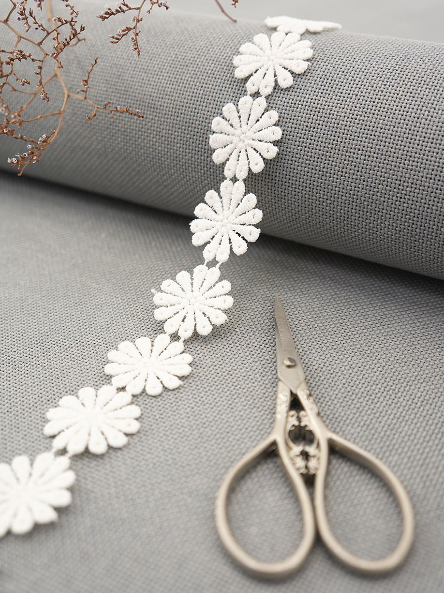 Кружево - гипюр представляет собой ажурный материал, состоящий из выпуклых кружевных элементов, соединенных сетчатыми связками, является сцепным видом кружева. Кружево часто используется при отделке изделий. Кружевом украшают одежду, воротники, манжеты,головные уборы, шали, шарфы, интерьерные изделия, выкраивают отдельные элементы кружева и делают из него эффектные аппликации, используют при пошиве игрушек, создании аксессуаров и брошей ручной работы. Идеально комбинируется с любыми видами тканей и материалов. Качественный материал с хорошей фактурой, с характерным металлизированным блеском. Кружево украсит любой наряд и сделает ваш образ романтичным, неповторимым. Гипюр - изящество, легкость и красота в каждом штрихе. Рекомендации по уходу: стирать в специальном мешочке с использованием мягких моющих средств. Температура воды – не более 40 градусов. Гладить через влажную ткань при температуре до 150 градусов.