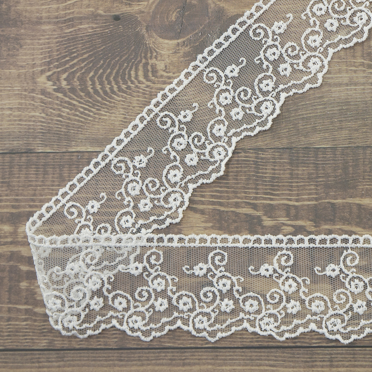 Вышивка выполнена матовыми полиэстеровыми нитями №110. Тюль-основа из 100% полиэстера белого цвета имеет запас на растяжимость, не дает стягивания швов, края не осыпаются. Применяется для отделки свадебных и нарядных женских платьев. Также применяется для отделки женских платьев, юбок и жакетов из легких и средней плотности тканей, например сукна и габардина; великолепно подходит для отделки женского белья и одежды из трикотажа; изысканно смотрится как отделка вязаных изделий. Кружево на тюле мягкое, удобно в носке и легкое в уходе, не мнется. Стирать в режиме деликатной стирки, сушить в расправленном виде, гладить с изнаночной стороны в 1 или 2 температурном режиме.