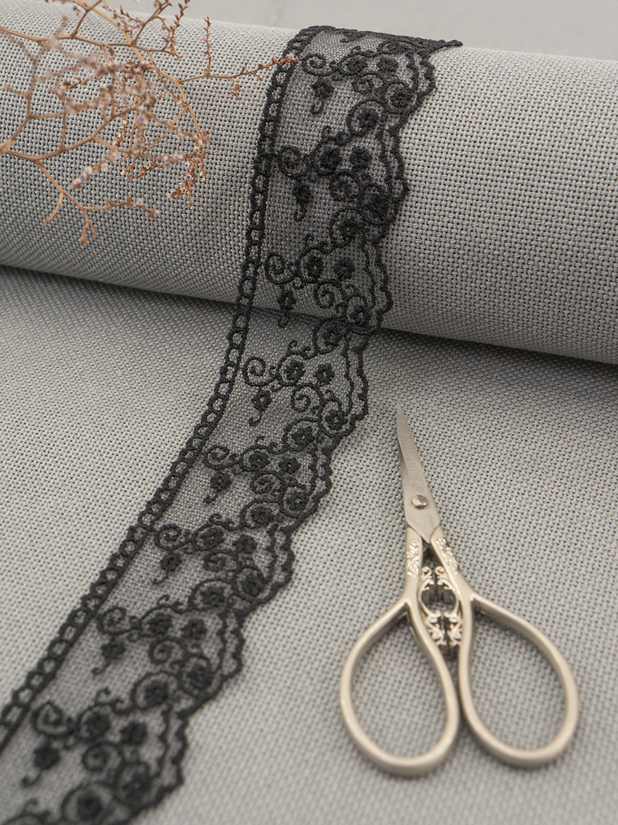 Вышивка выполнена матовыми полиэстеровыми нитями №110. Тюль-основа из 100% полиэстера белого цвета имеет запас на растяжимость, не дает стягивания швов, края не осыпаются. Применяется для отделки свадебных и нарядных женских платьев. Также применяется для отделки женских платьев, юбок и жакетов из легких и средней плотности тканей, например сукна и габардина; великолепно подходит для отделки женского белья и одежды из трикотажа; изысканно смотрится как отделка вязаных изделий. Кружево на тюле мягкое, удобно в носке и легкое в уходе, не мнется. Стирать в режиме деликатной стирки, сушить в расправленном виде, гладить с изнаночной стороны в 1 или 2 температурном режиме.