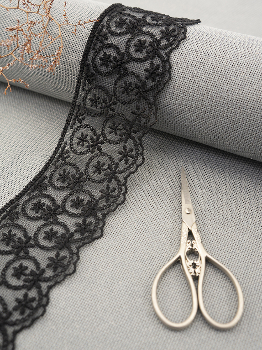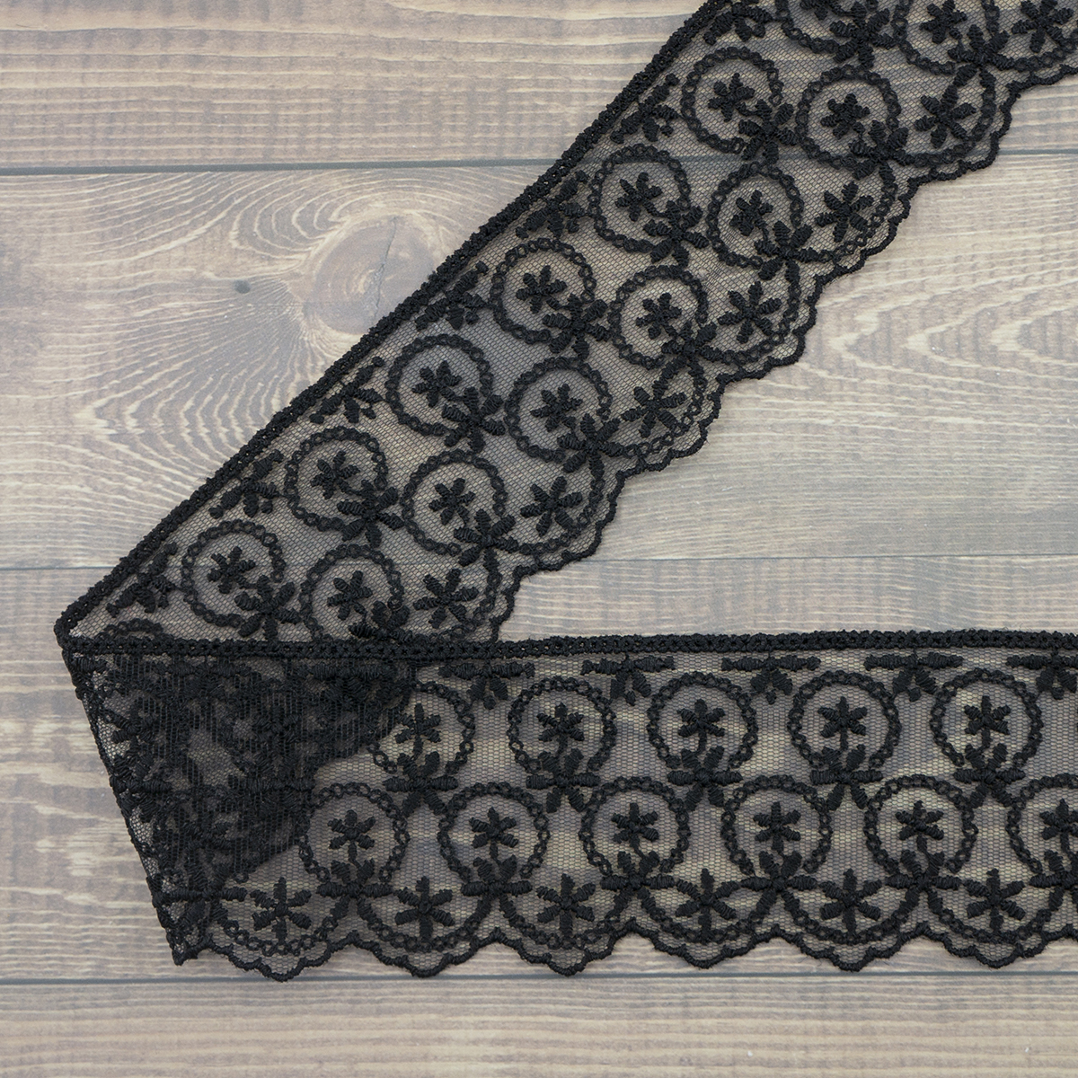 Вышивка выполнена матовыми полиэстеровыми нитями №110. Тюль-основа из 100% полиэстера белого цвета имеет запас на растяжимость, не дает стягивания швов, края не осыпаются. Применяется для отделки свадебных и нарядных женских платьев. Также применяется для отделки женских платьев, юбок и жакетов из легких и средней плотности тканей, например сукна и габардина; великолепно подходит для отделки женского белья и одежды из трикотажа; изысканно смотрится как отделка вязаных изделий. Кружево на тюле мягкое, удобно в носке и легкое в уходе, не мнется. Стирать в режиме деликатной стирки, сушить в расправленном виде, гладить с изнаночной стороны в 1 или 2 температурном режиме.