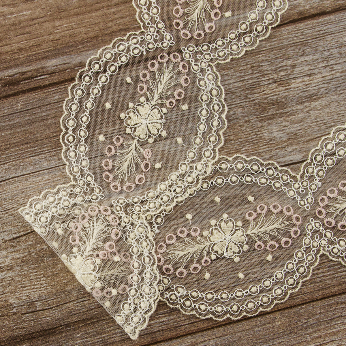 Вышивка выполнена матовыми полиэстеровыми нитями №110. Тюль-основа из 100% полиэстера белого цвета имеет запас на растяжимость, не дает стягивания швов, края не осыпаются. Применяется для отделки свадебных и нарядных женских платьев. Также применяется для отделки женских платьев, юбок и жакетов из легких и средней плотности тканей, например сукна и габардина; великолепно подходит для отделки женского белья и одежды из трикотажа; изысканно смотрится как отделка вязаных изделий. Кружево на тюле мягкое, удобно в носке и легкое в уходе, не мнется. Стирать в режиме деликатной стирки, сушить в расправленном виде, гладить с изнаночной стороны в 1 или 2 температурном режиме.