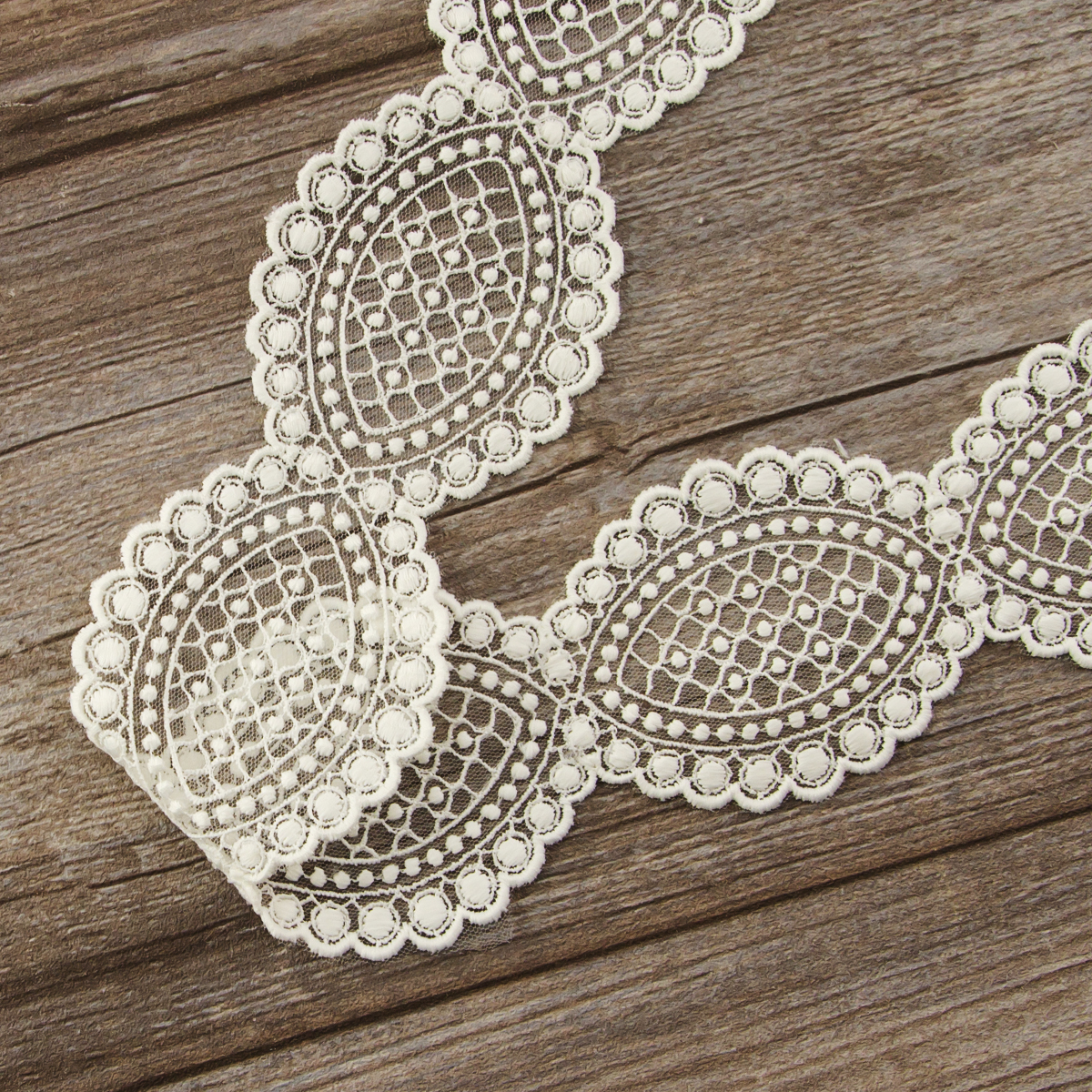 Вышивка выполнена матовыми полиэстеровыми нитями №110. Тюль-основа из 100% полиэстера белого цвета имеет запас на растяжимость, не дает стягивания швов, края не осыпаются. Применяется для отделки свадебных и нарядных женских платьев. Также применяется для отделки женских платьев, юбок и жакетов из легких и средней плотности тканей, например сукна и габардина; великолепно подходит для отделки женского белья и одежды из трикотажа; изысканно смотрится как отделка вязаных изделий. Кружево на тюле мягкое, удобно в носке и легкое в уходе, не мнется. Стирать в режиме деликатной стирки, сушить в расправленном виде, гладить с изнаночной стороны в 1 или 2 температурном режиме.