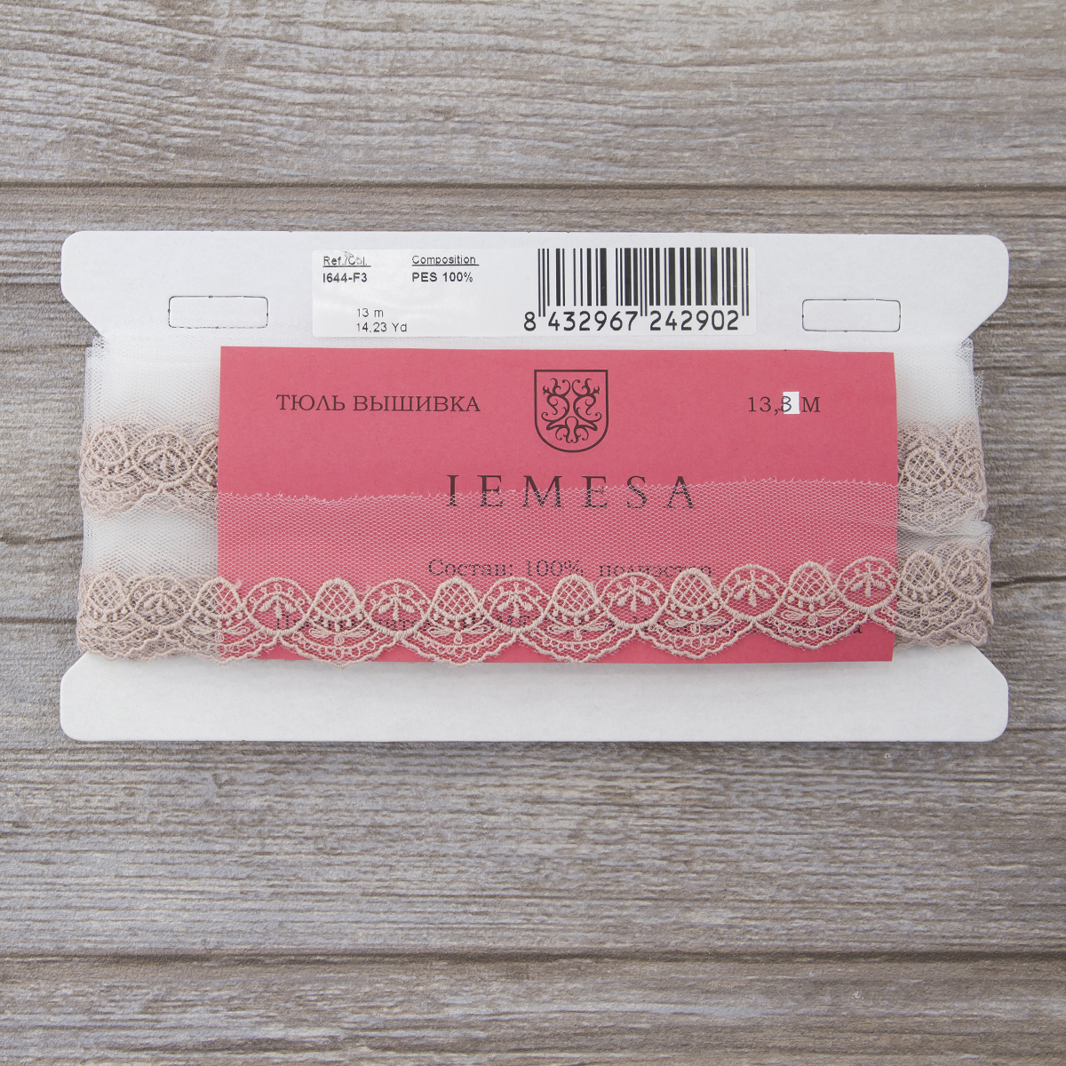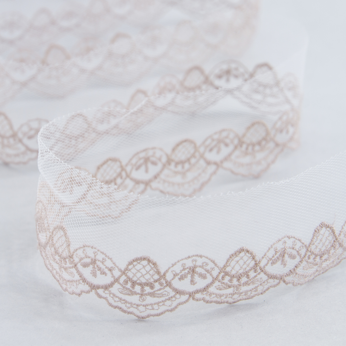 Вышивка выполнена матовыми полиэстеровыми нитями №110. Тюль-основа из 100% полиэстера имеет запас на растяжимость, не дает стягивания швов, края не осыпаются. Применяется для отделки свадебных и нарядных женских платьев. Также применяется для отделки женских платьев, юбок и жакетов из легких и средней плотности тканей, например сукна и габардина; великолепно подходит для отделки женского белья и одежды из трикотажа; изысканно смотрится как отделка вязаных изделий. Кружево на тюле мягкое, удобно в носке и легкое в уходе, не мнется. Стирать в режиме деликатной стирки, сушить в расправленном виде, гладить с изнаночной стороны в 1 или 2 температурном режиме.