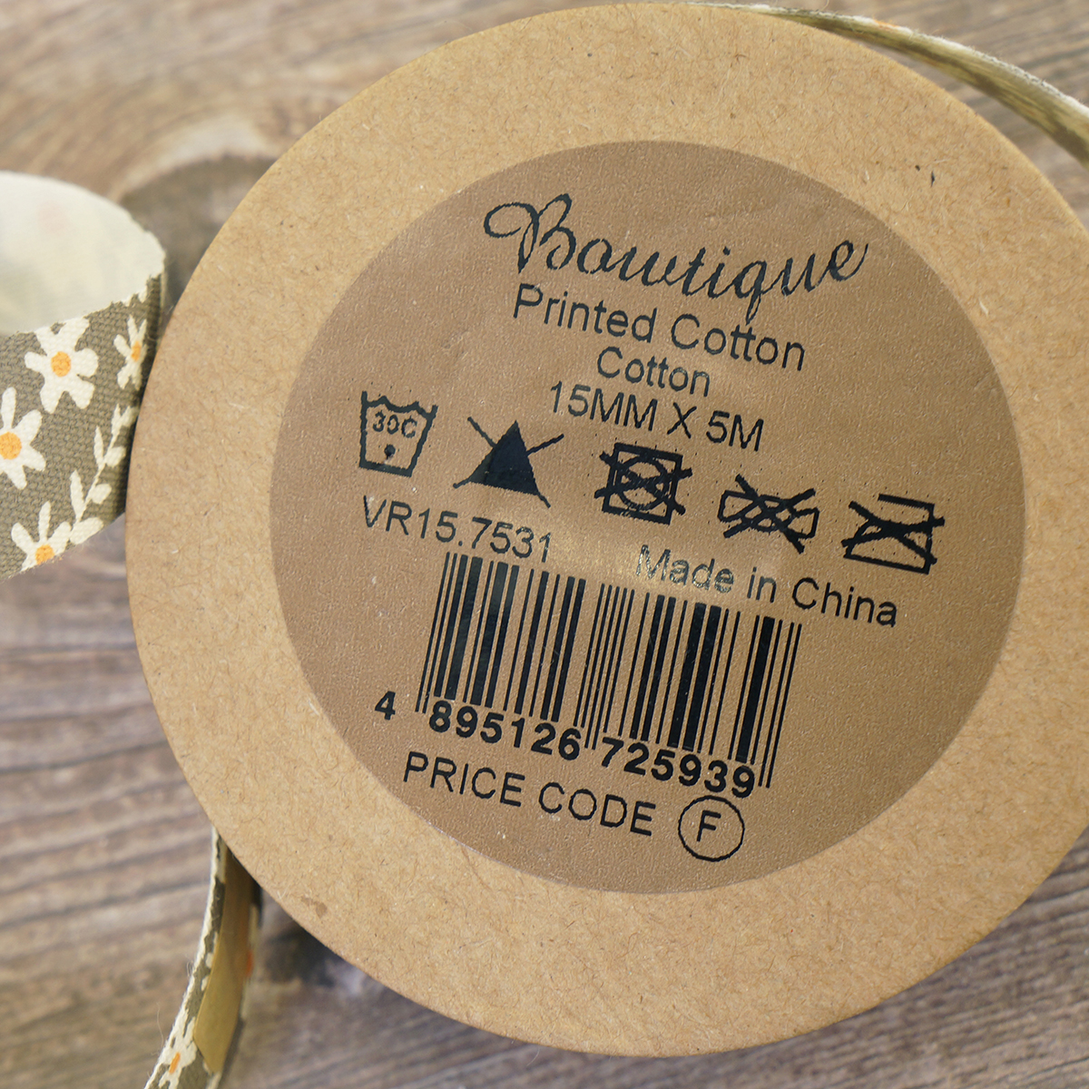 Лента хлопковая с рисунком на картонной катушке для шитья, хобби, упаковки.