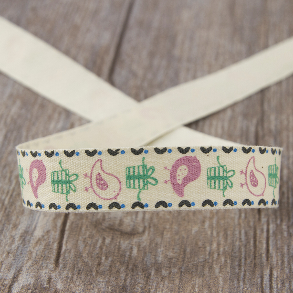 Лента хлопковая с рисунком на картонной катушке для шитья, хобби, упаковки.