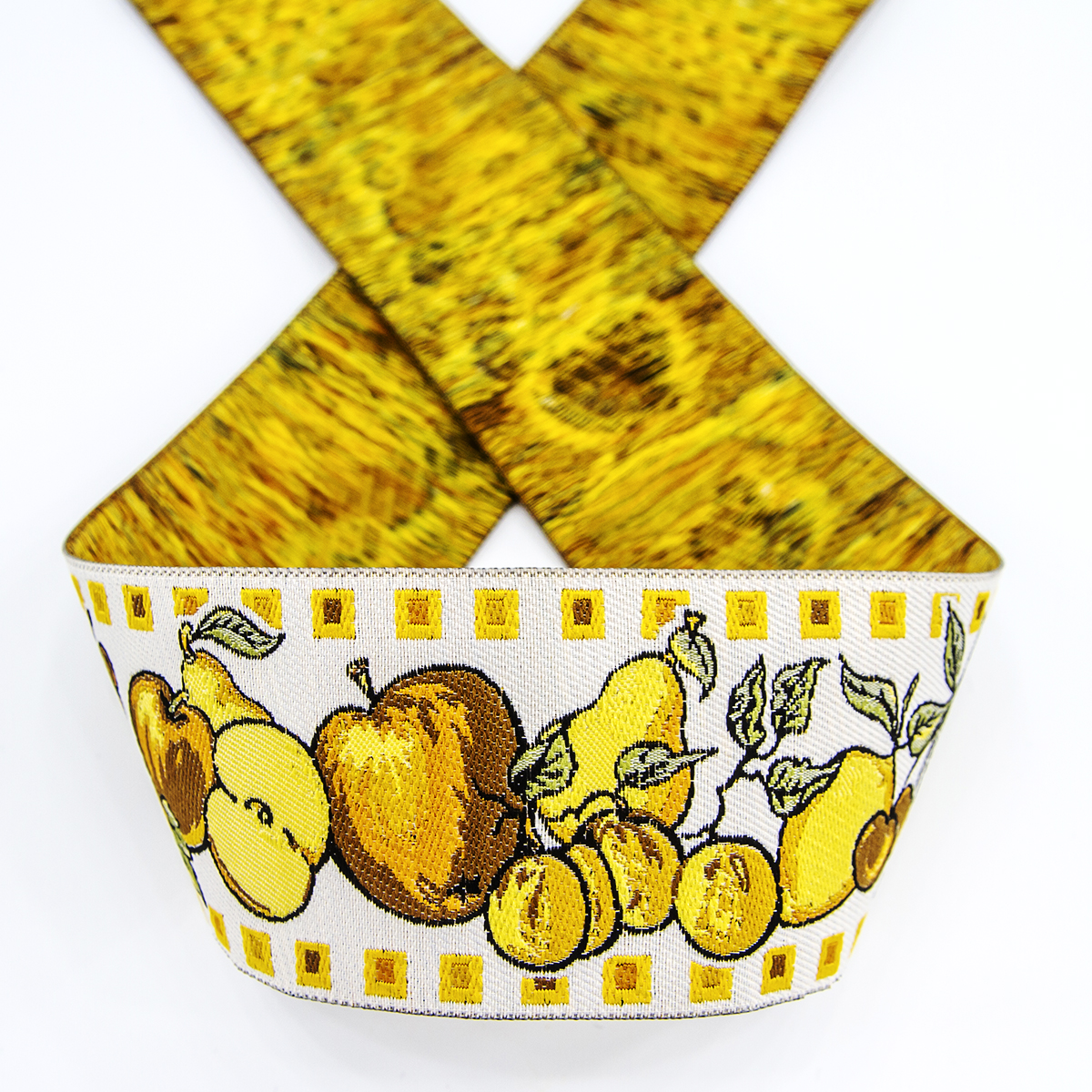 Лента жаккард прочна и долговечна, слабо растягивается, устойчива к истиранию, не линяет. Своеобразный рельефный рисунок сложного переплетения на плотной ткани напоминает гобелен. Стирка желательна при невысоких температурах (+30 °С). Крайне нежелательно отбеливать и отжимать, а также сушить под прямыми солнечными лучами. Гладить лучше с изнаночной стороны. Жаккардовые ленты широко используется для отделки штор, одежды, подушек и других творческих проектов