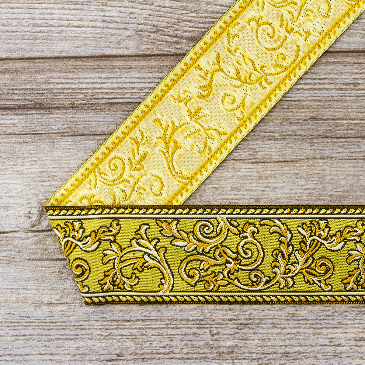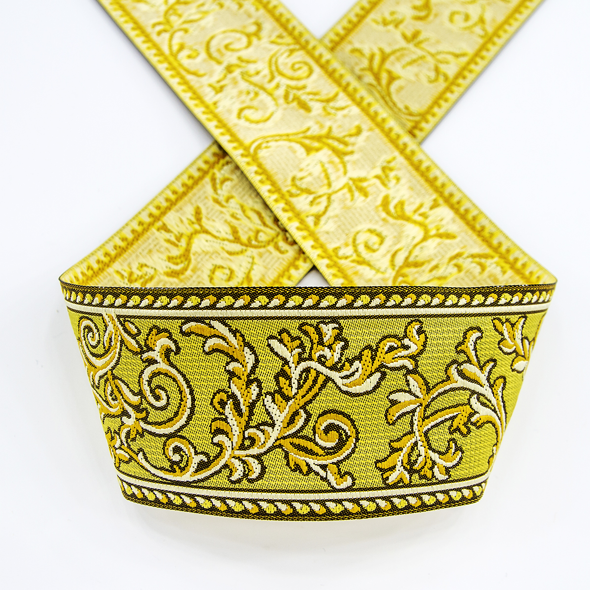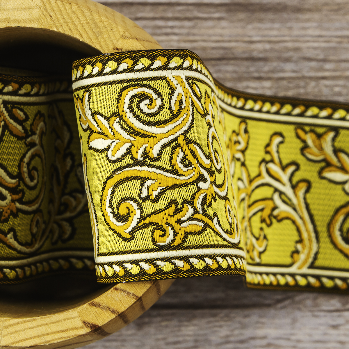 Лента жаккард прочна и долговечна, слабо растягивается, устойчива к истиранию, не линяет. Своеобразный рельефный рисунок сложного переплетения на плотной ткани напоминает гобелен. Стирка желательна при невысоких температурах (+30 °С). Крайне нежелательно отбеливать и отжимать, а также сушить под прямыми солнечными лучами. Гладить лучше с изнаночной стороны. Жаккардовые ленты широко используется для отделки штор, одежды, подушек и других творческих проектов