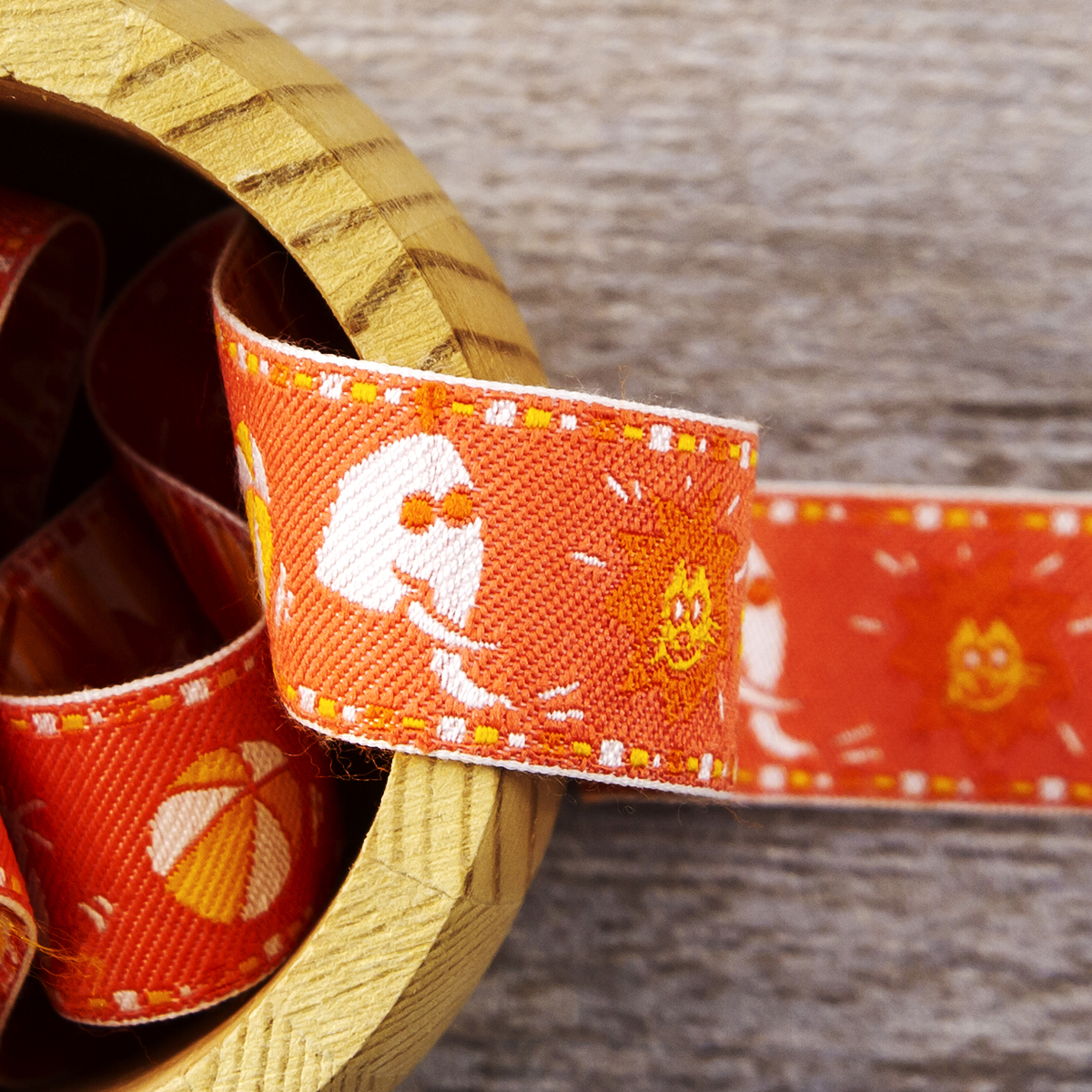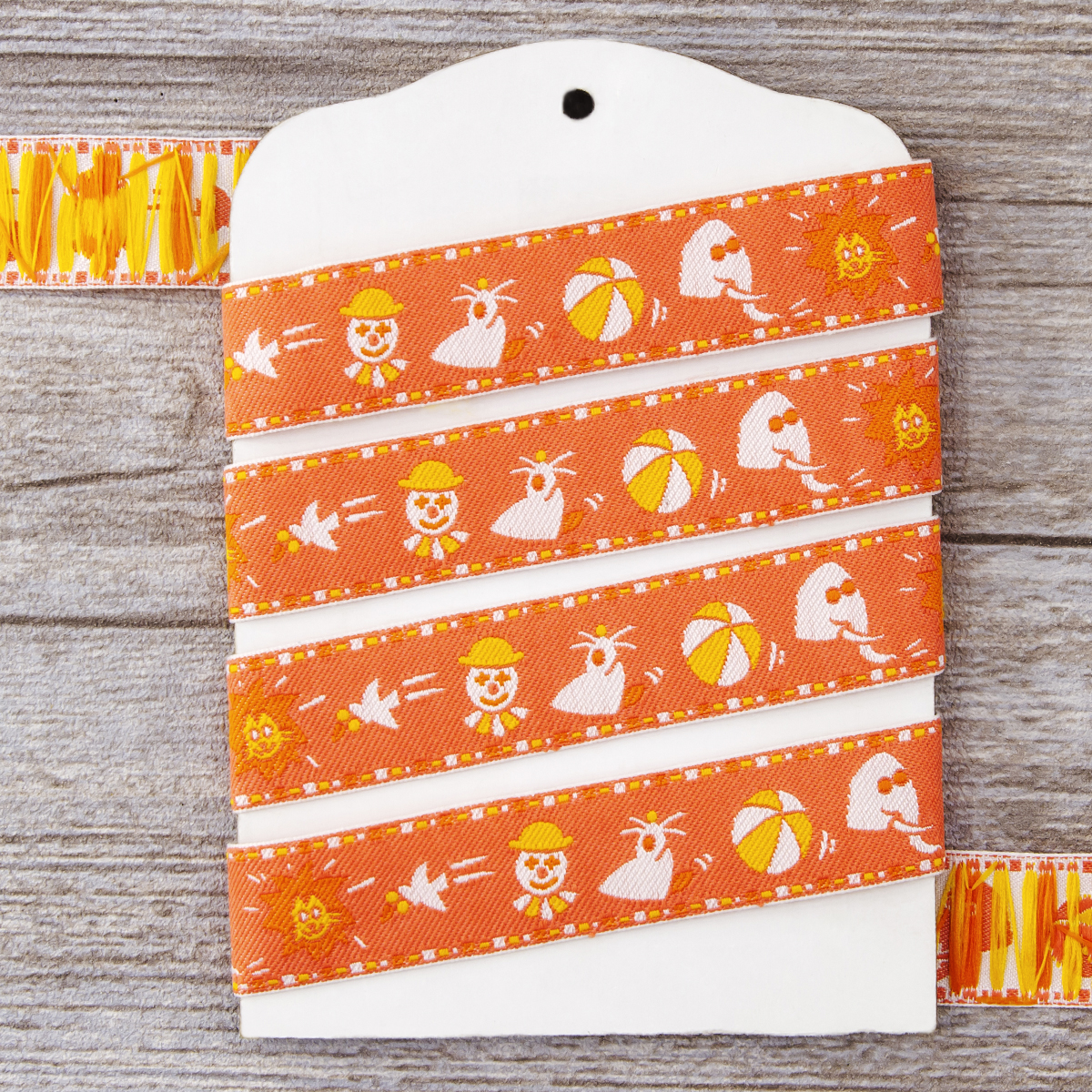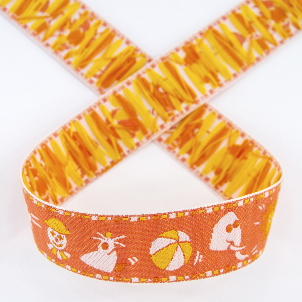 Лента жаккард прочна и долговечна, слабо растягивается, устойчива к истиранию, не линяет. Своеобразный рельефный рисунок сложного переплетения на плотной ткани напоминает гобелен. Стирка желательна при невысоких температурах (+30 °С). Крайне нежелательно отбеливать и отжимать, а также сушить под прямыми солнечными лучами. Гладить лучше с изнаночной стороны. Жаккардовые ленты широко используется для отделки штор, одежды, подушек и других творческих проектов