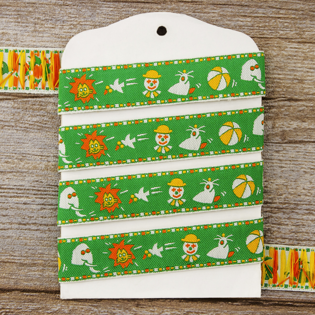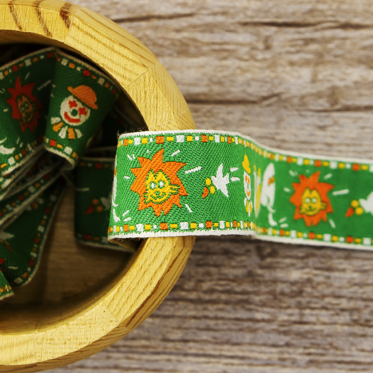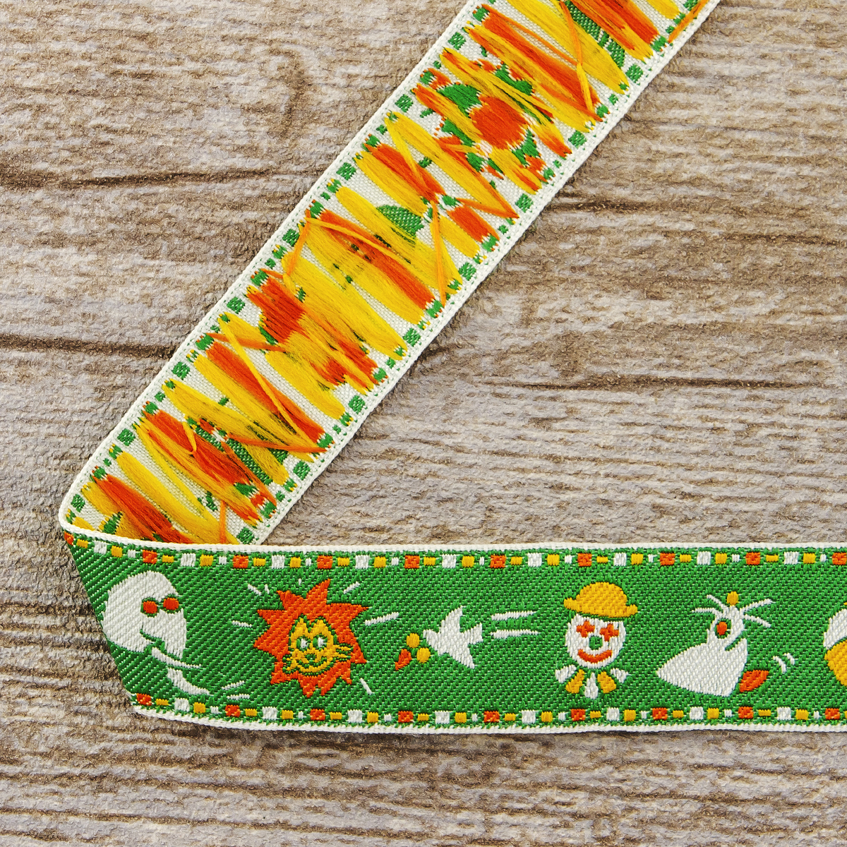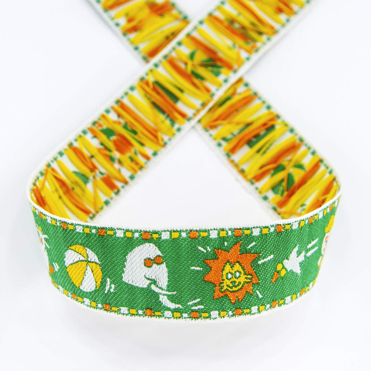Лента жаккард прочна и долговечна, слабо растягивается, устойчива к истиранию, не линяет. Своеобразный рельефный рисунок сложного переплетения на плотной ткани напоминает гобелен. Стирка желательна при невысоких температурах (+30 °С). Крайне нежелательно отбеливать и отжимать, а также сушить под прямыми солнечными лучами. Гладить лучше с изнаночной стороны. Жаккардовые ленты широко используется для отделки штор, одежды, подушек и других творческих проектов