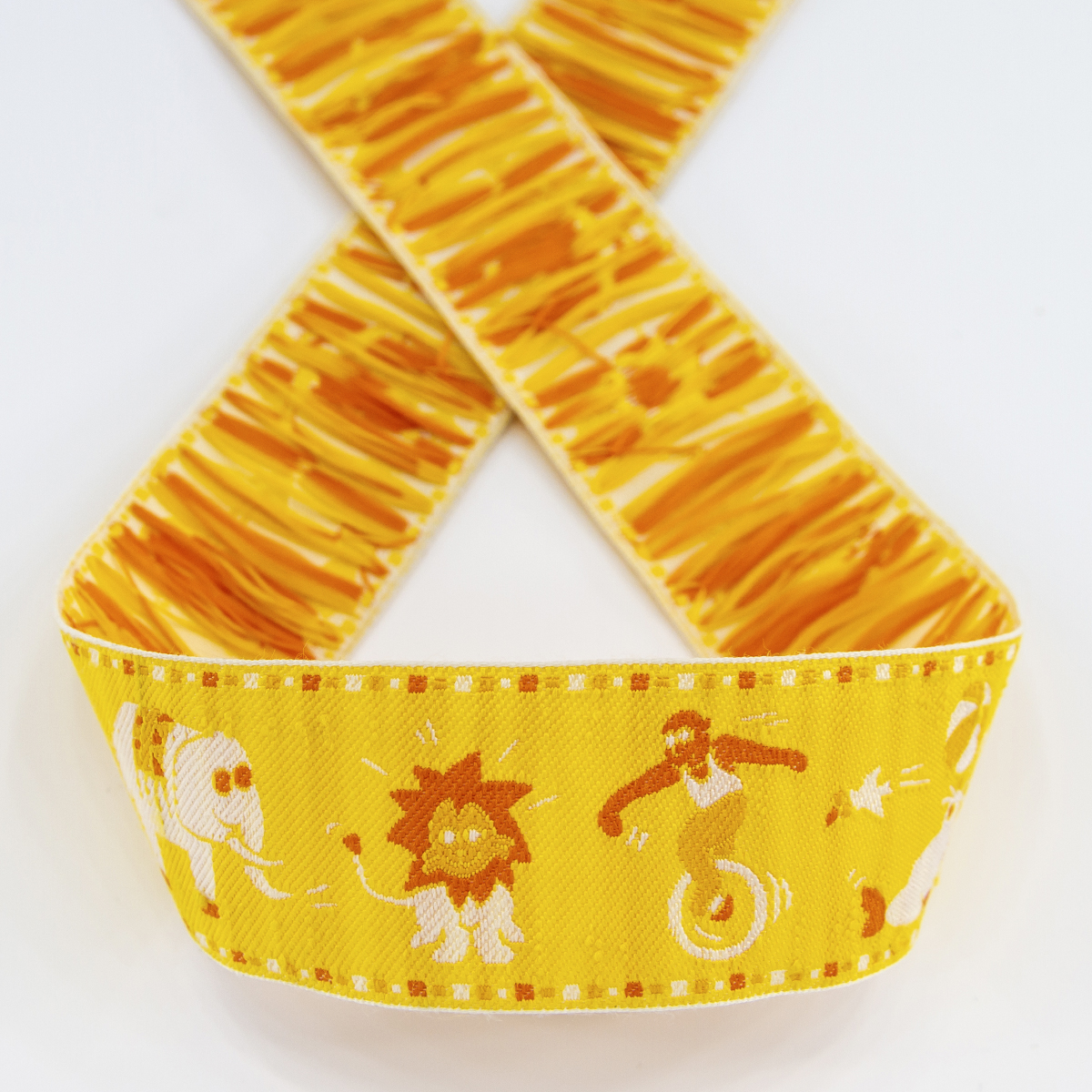 Лента жаккард прочна и долговечна, слабо растягивается, устойчива к истиранию, не линяет. Своеобразный рельефный рисунок сложного переплетения на плотной ткани напоминает гобелен. Стирка желательна при невысоких температурах (+30 °С). Крайне нежелательно отбеливать и отжимать, а также сушить под прямыми солнечными лучами. Гладить лучше с изнаночной стороны. Жаккардовые ленты широко используется для отделки штор, одежды, подушек и других творческих проектов