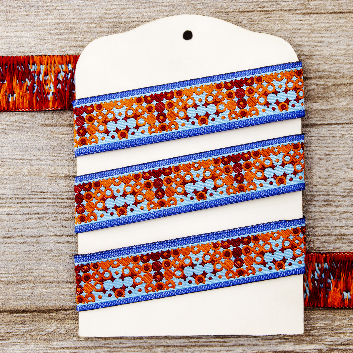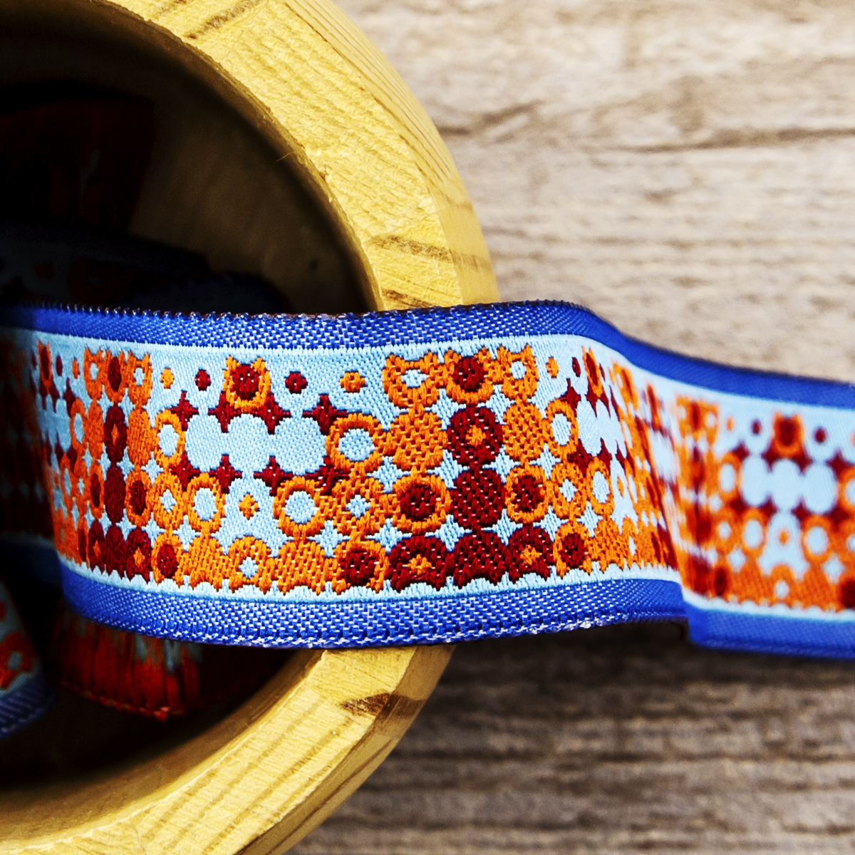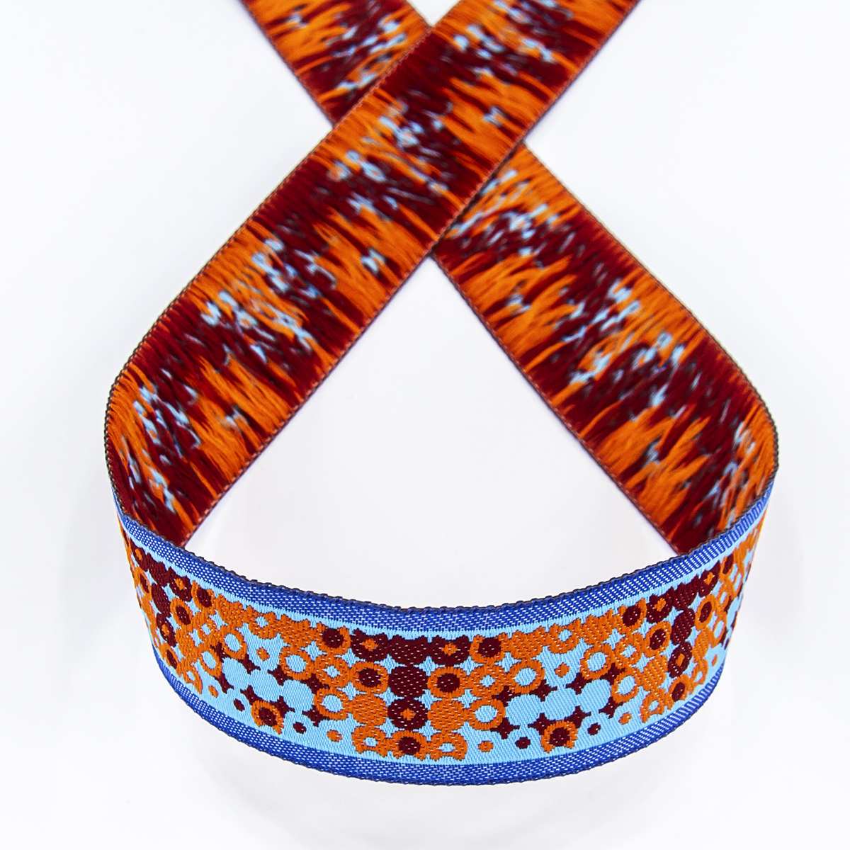 Лента жаккард прочна и долговечна, слабо растягивается, устойчива к истиранию, не линяет. Своеобразный рельефный рисунок сложного переплетения на плотной ткани напоминает гобелен. Стирка желательна при невысоких температурах (+30 °С). Крайне нежелательно отбеливать и отжимать, а также сушить под прямыми солнечными лучами. Гладить лучше с изнаночной стороны. Жаккардовые ленты широко используется для отделки штор, одежды, подушек и других творческих проектов