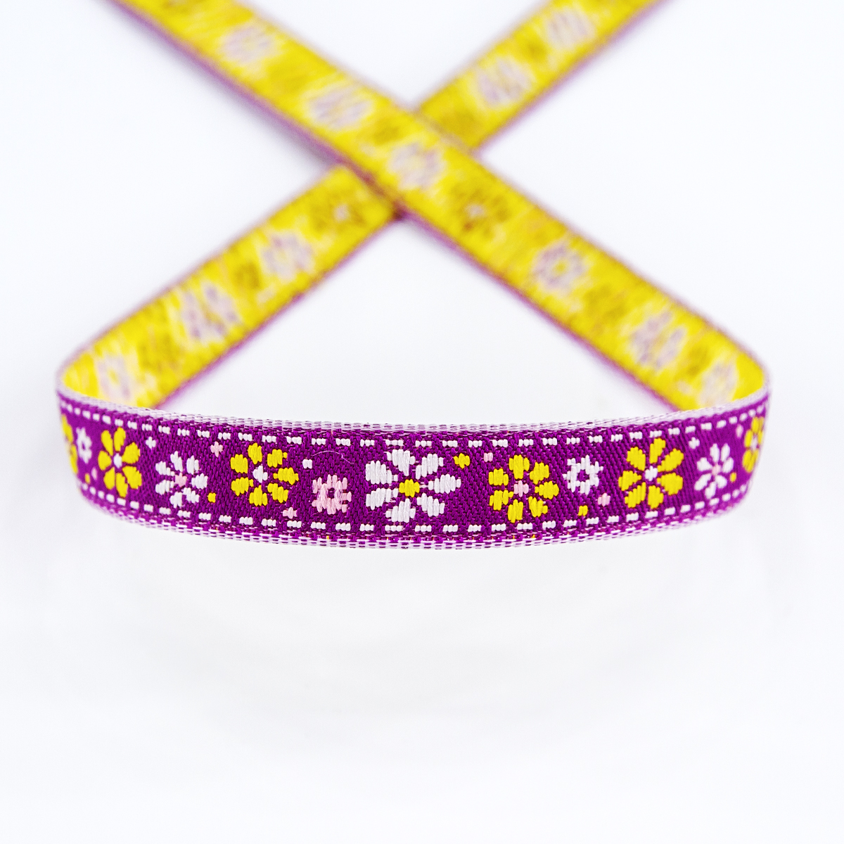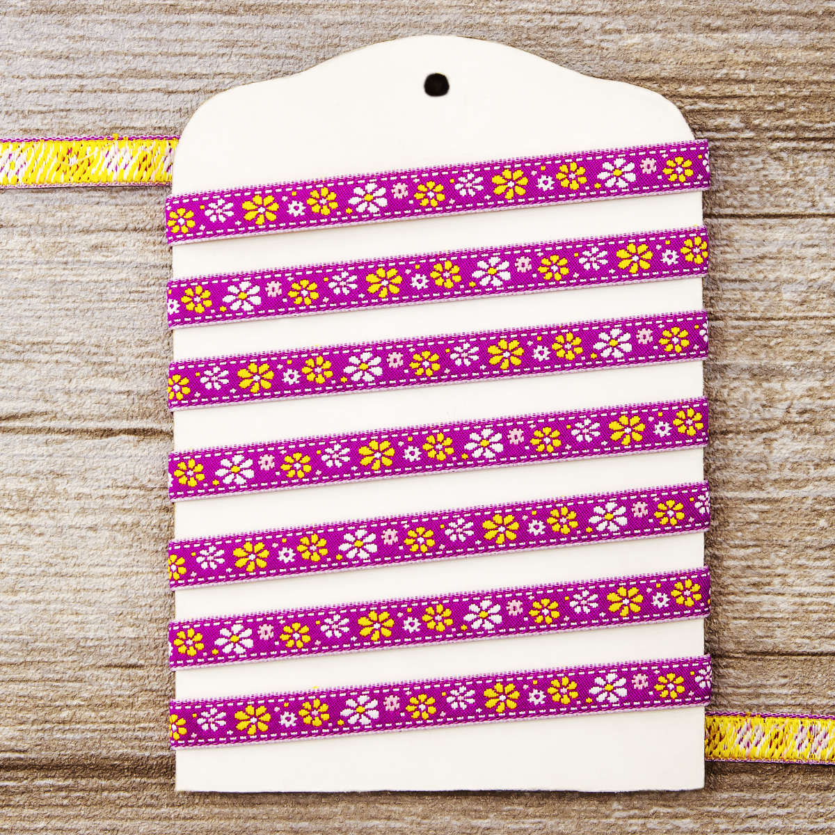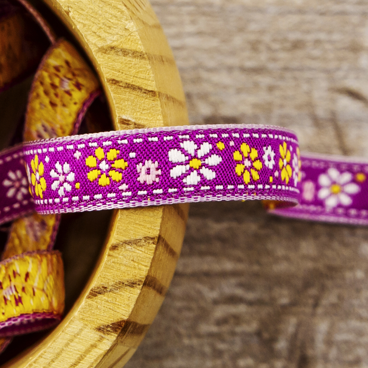 Лента жаккард прочна и долговечна, слабо растягивается, устойчива к истиранию, не линяет. Своеобразный рельефный рисунок сложного переплетения на плотной ткани напоминает гобелен. Стирка желательна при невысоких температурах (+30 °С). Крайне нежелательно отбеливать и отжимать, а также сушить под прямыми солнечными лучами. Гладить лучше с изнаночной стороны. Жаккардовые ленты широко используется для отделки штор, одежды, подушек и других творческих проектов