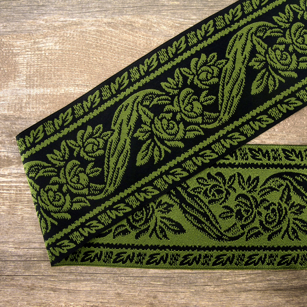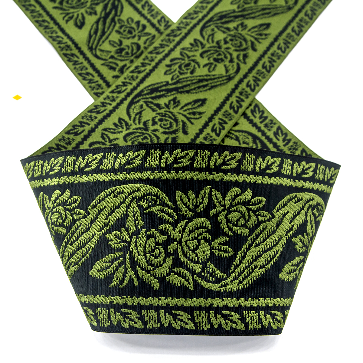 Лента жаккард прочна и долговечна, слабо растягивается, устойчива к истиранию, не линяет. Своеобразный рельефный рисунок сложного переплетения на плотной ткани напоминает гобелен. Стирка желательна при невысоких температурах (+30 °С). Крайне нежелательно отбеливать и отжимать, а также сушить под прямыми солнечными лучами. Гладить лучше с изнаночной стороны. Жаккардовые ленты широко используется для отделки штор, одежды, подушек и других творческих проектов