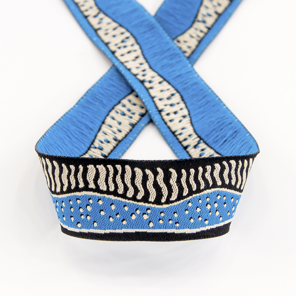 Лента жаккард прочна и долговечна, слабо растягивается, устойчива к истиранию, не линяет. Своеобразный рельефный рисунок сложного переплетения на плотной ткани напоминает гобелен. Стирка желательна при невысоких температурах (+30 °С). Крайне нежелательно отбеливать и отжимать, а также сушить под прямыми солнечными лучами. Гладить лучше с изнаночной стороны. Жаккардовые ленты широко используется для отделки штор, одежды, подушек и других творческих проектов