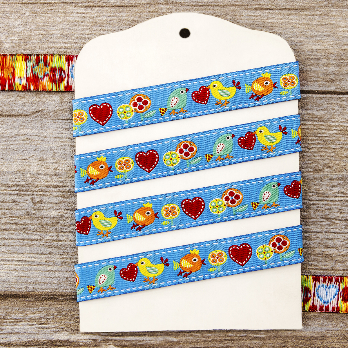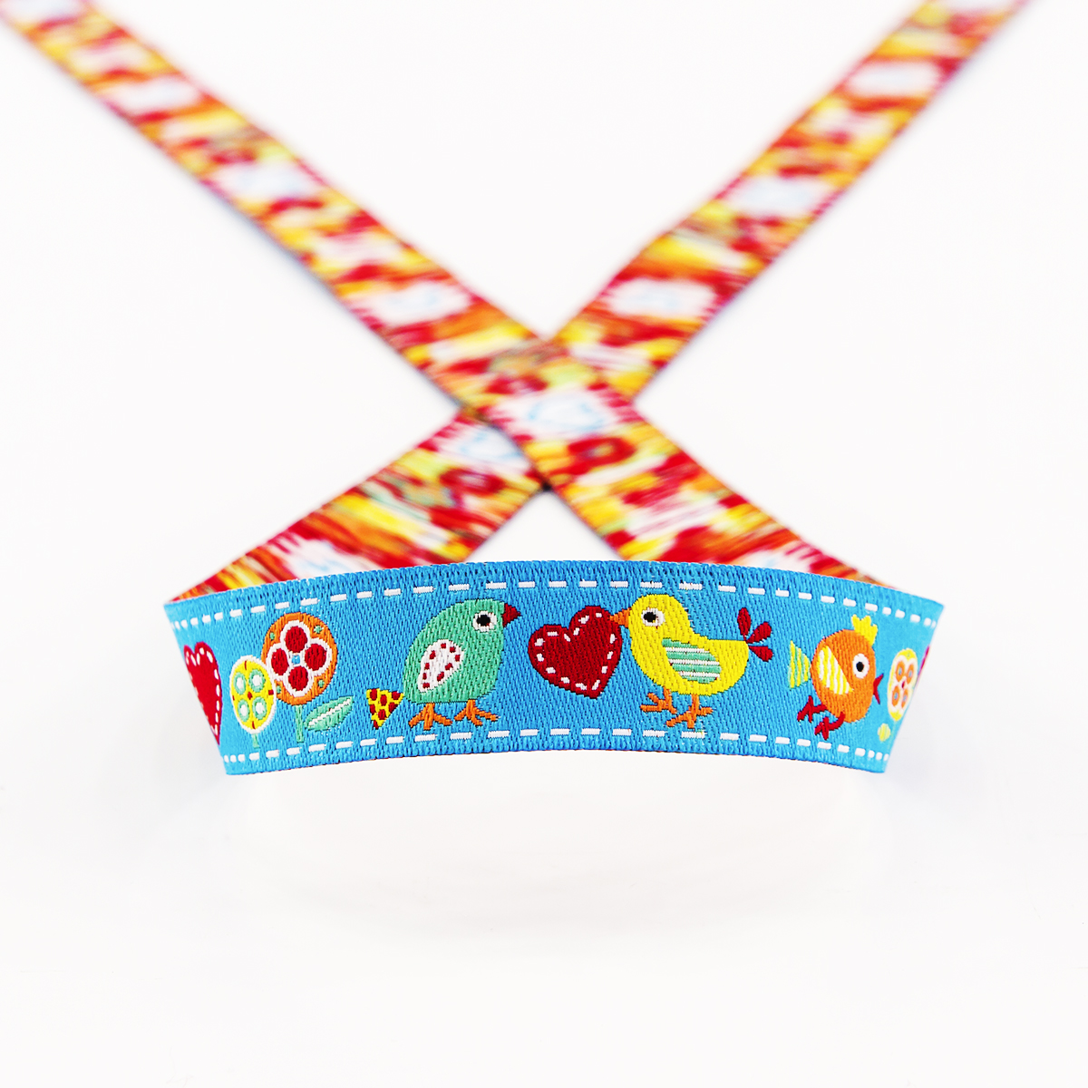 Лента жаккард прочна и долговечна, слабо растягивается, устойчива к истиранию, не линяет. Своеобразный рельефный рисунок сложного переплетения на плотной ткани напоминает гобелен. Стирка желательна при невысоких температурах (+30 °С). Крайне нежелательно отбеливать и отжимать, а также сушить под прямыми солнечными лучами. Гладить лучше с изнаночной стороны. Жаккардовые ленты широко используется для отделки штор, одежды, подушек и других творческих проектов