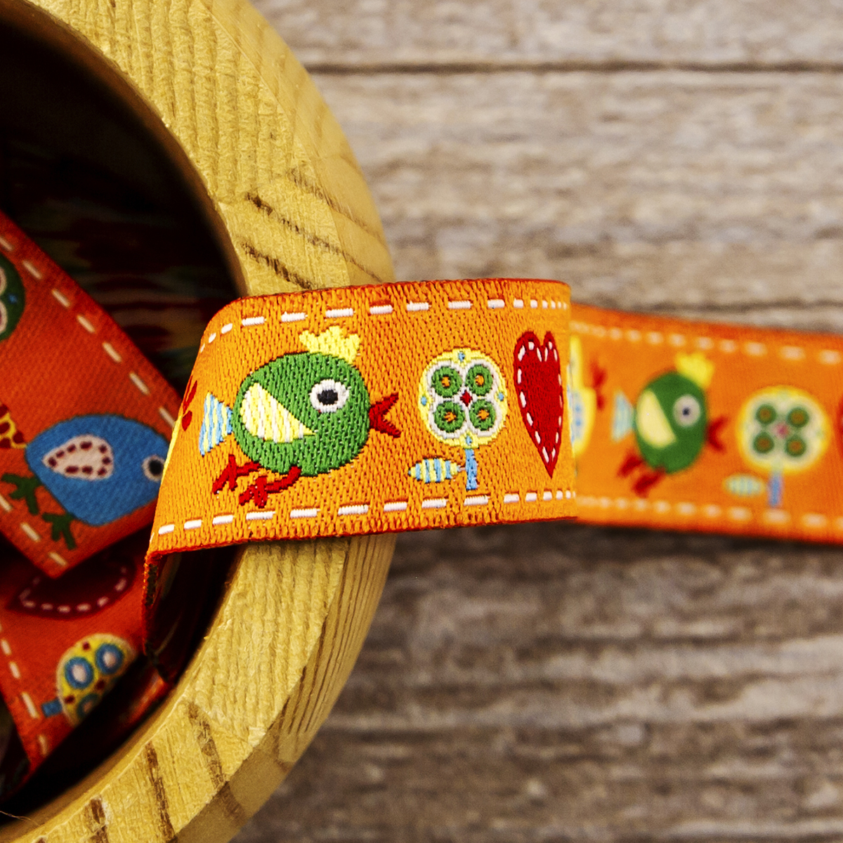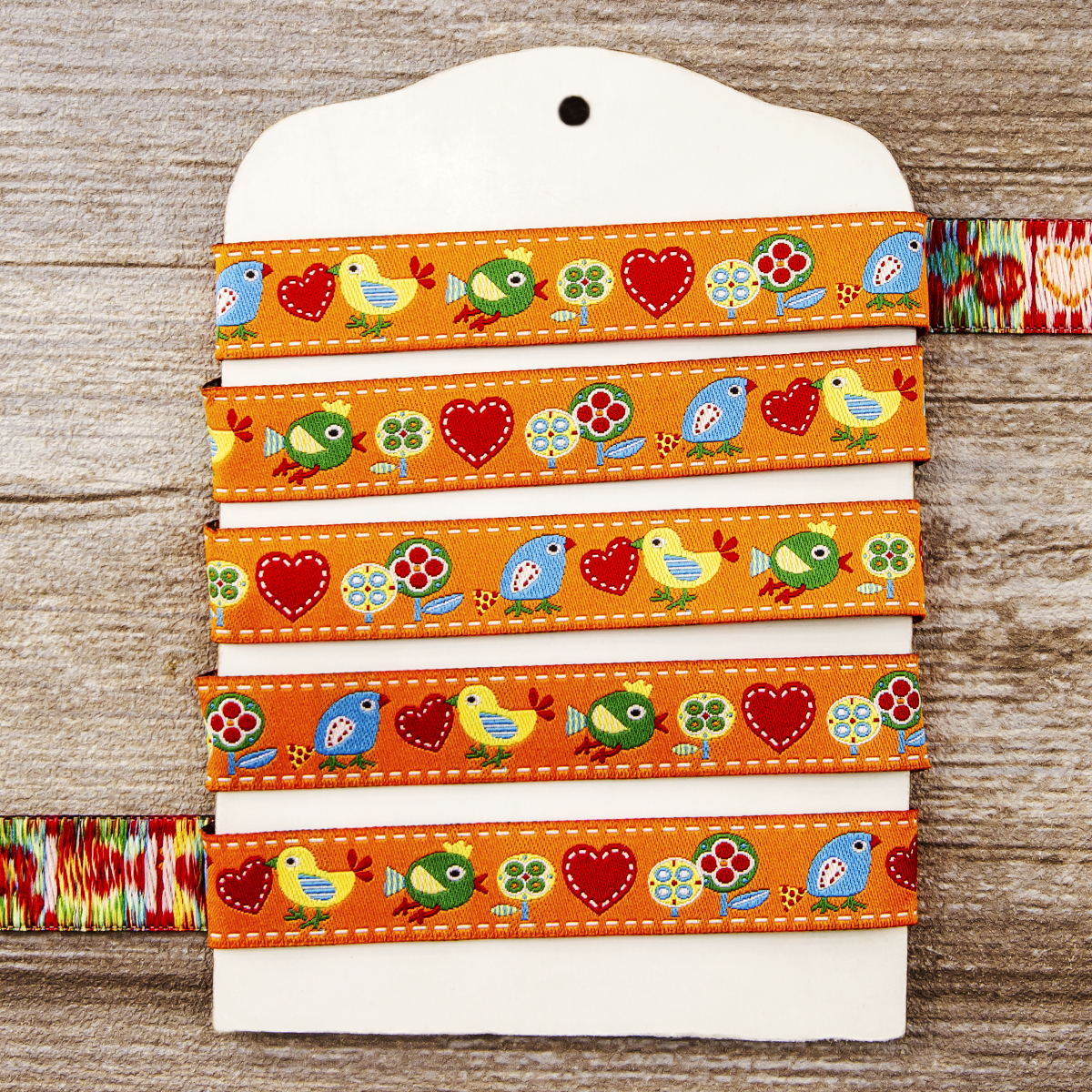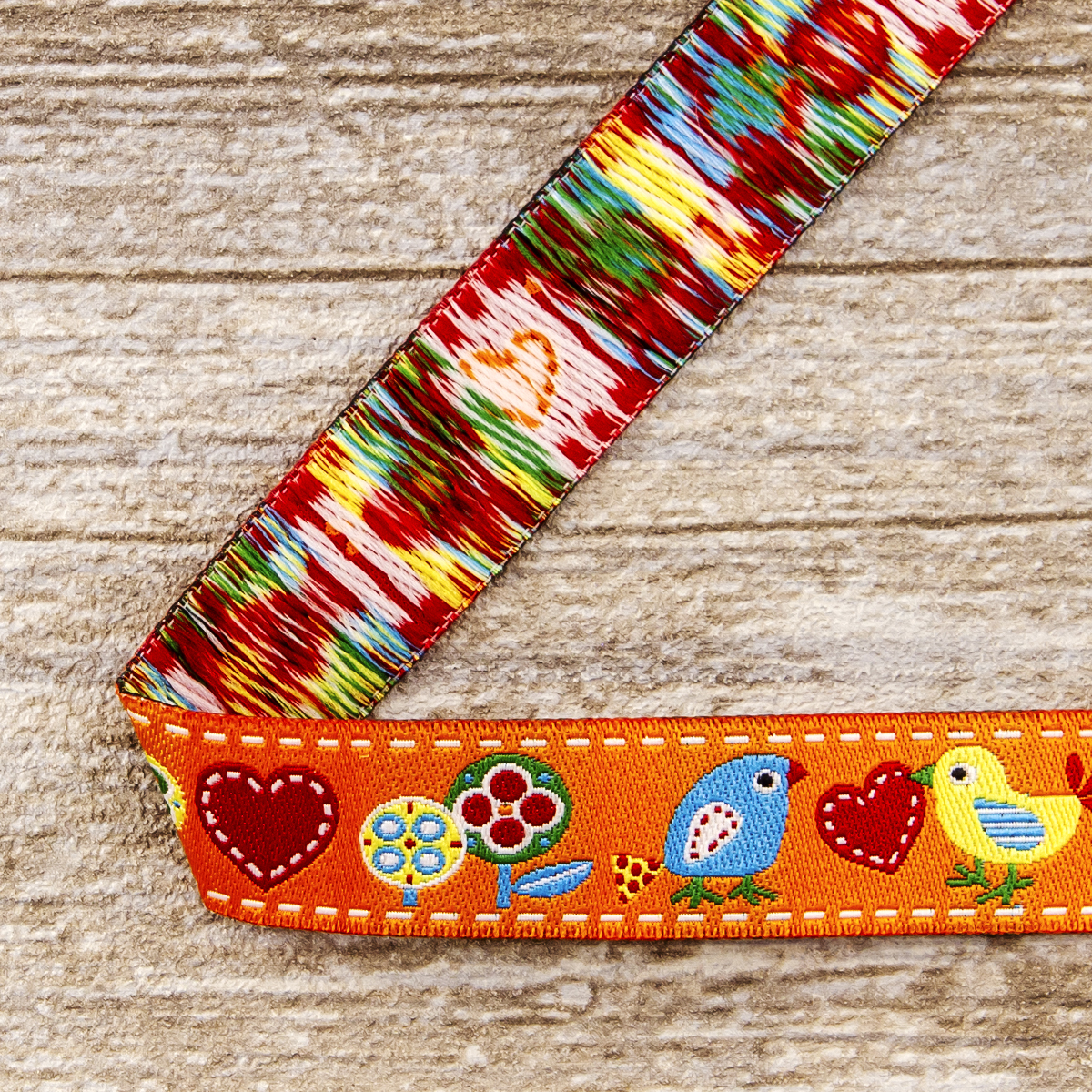 Лента жаккард прочна и долговечна, слабо растягивается, устойчива к истиранию, не линяет. Своеобразный рельефный рисунок сложного переплетения на плотной ткани напоминает гобелен. Стирка желательна при невысоких температурах (+30 °С). Крайне нежелательно отбеливать и отжимать, а также сушить под прямыми солнечными лучами. Гладить лучше с изнаночной стороны. Жаккардовые ленты широко используется для отделки штор, одежды, подушек и других творческих проектов