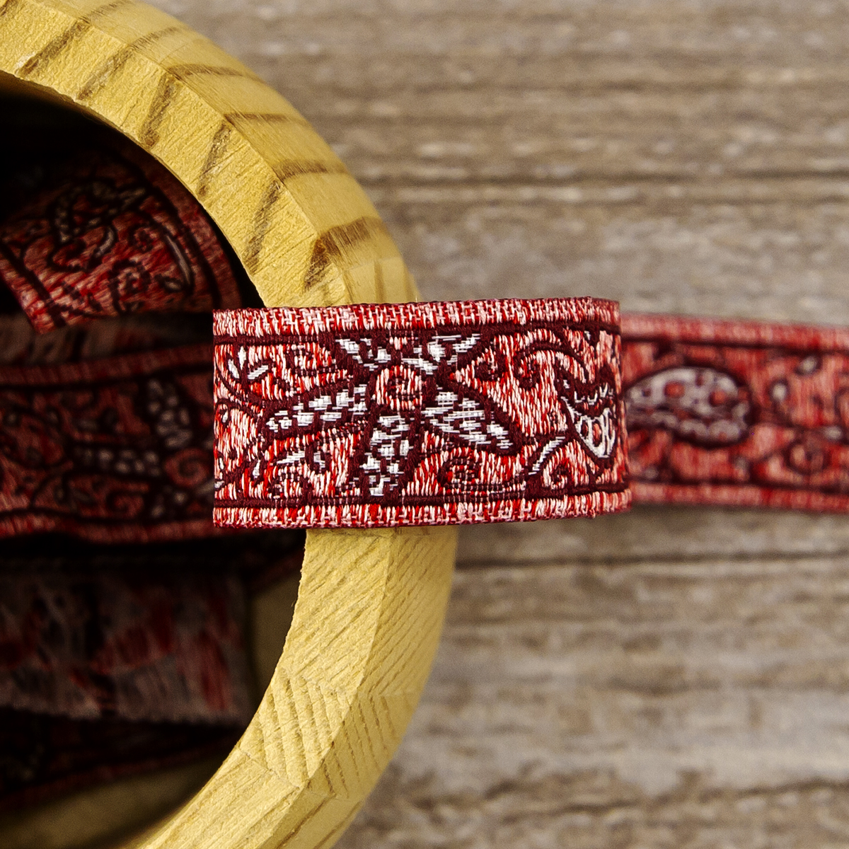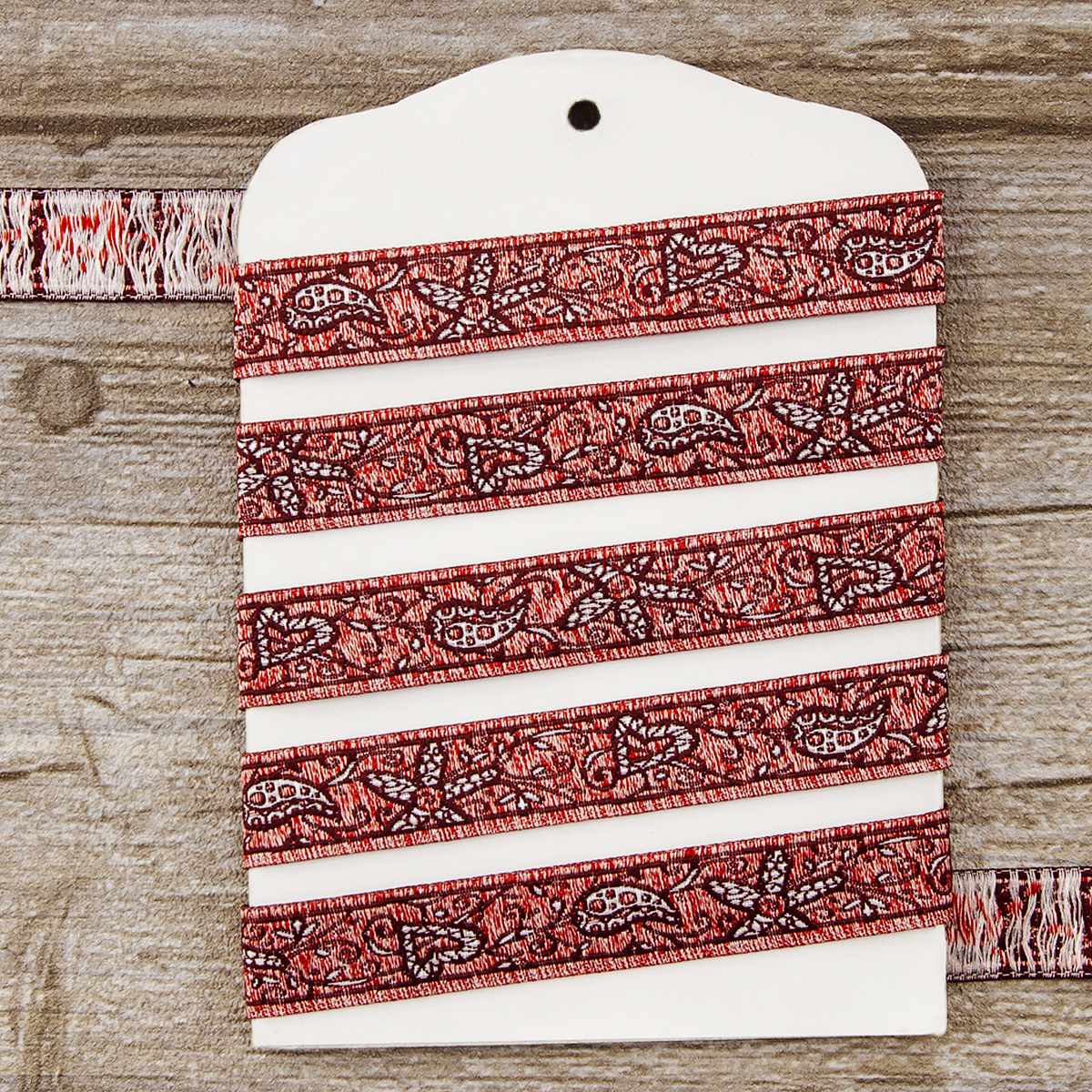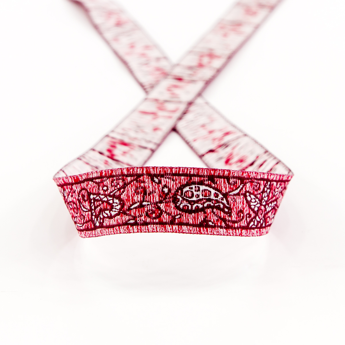 Лента жаккард прочна и долговечна, слабо растягивается, устойчива к истиранию, не линяет. Своеобразный рельефный рисунок сложного переплетения на плотной ткани напоминает гобелен. Стирка желательна при невысоких температурах (+30 °С). Крайне нежелательно отбеливать и отжимать, а также сушить под прямыми солнечными лучами. Гладить лучше с изнаночной стороны. Жаккардовые ленты широко используется для отделки штор, одежды, подушек и других творческих проектов