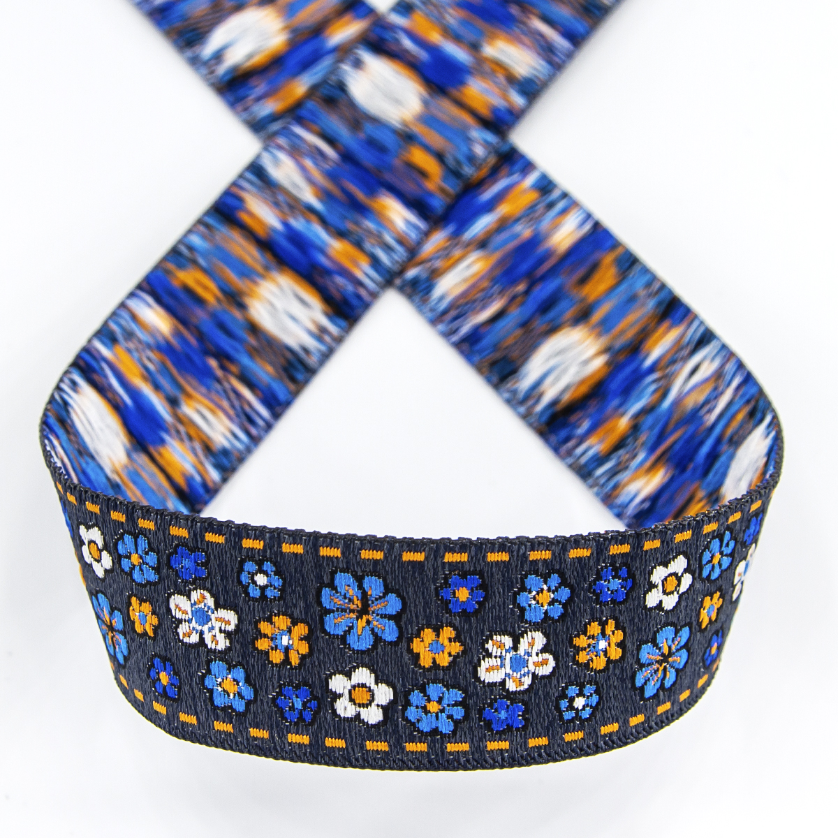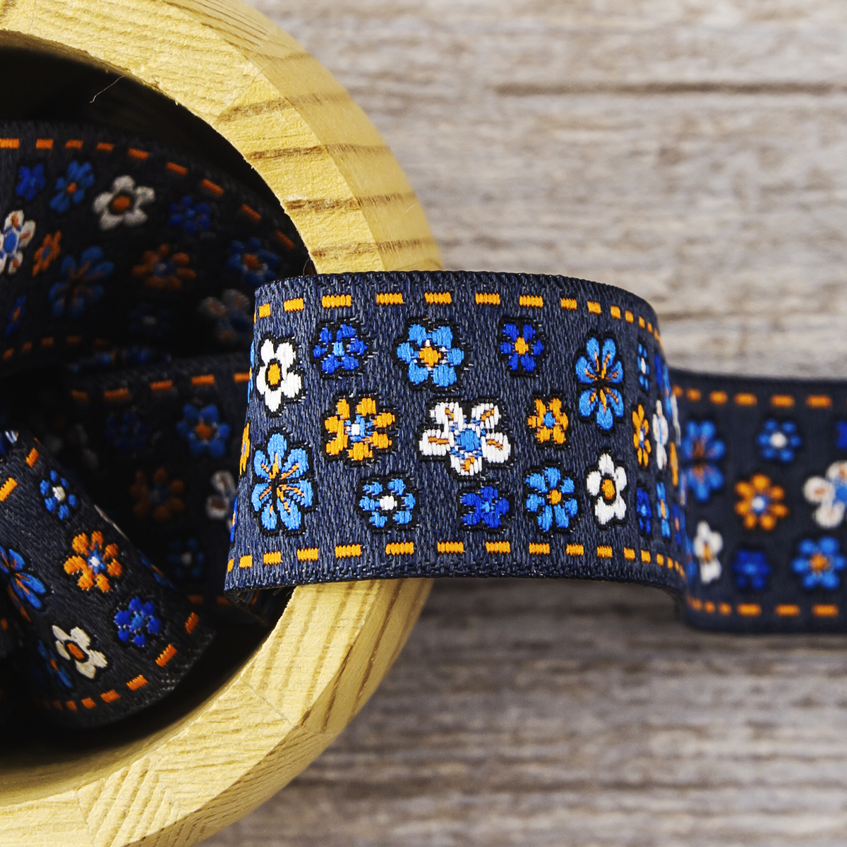Лента жаккард прочна и долговечна, слабо растягивается, устойчива к истиранию, не линяет. Своеобразный рельефный рисунок сложного переплетения на плотной ткани напоминает гобелен. Стирка желательна при невысоких температурах (+30 °С). Крайне нежелательно отбеливать и отжимать, а также сушить под прямыми солнечными лучами. Гладить лучше с изнаночной стороны. Жаккардовые ленты широко используется для отделки штор, одежды, подушек и других творческих проектов