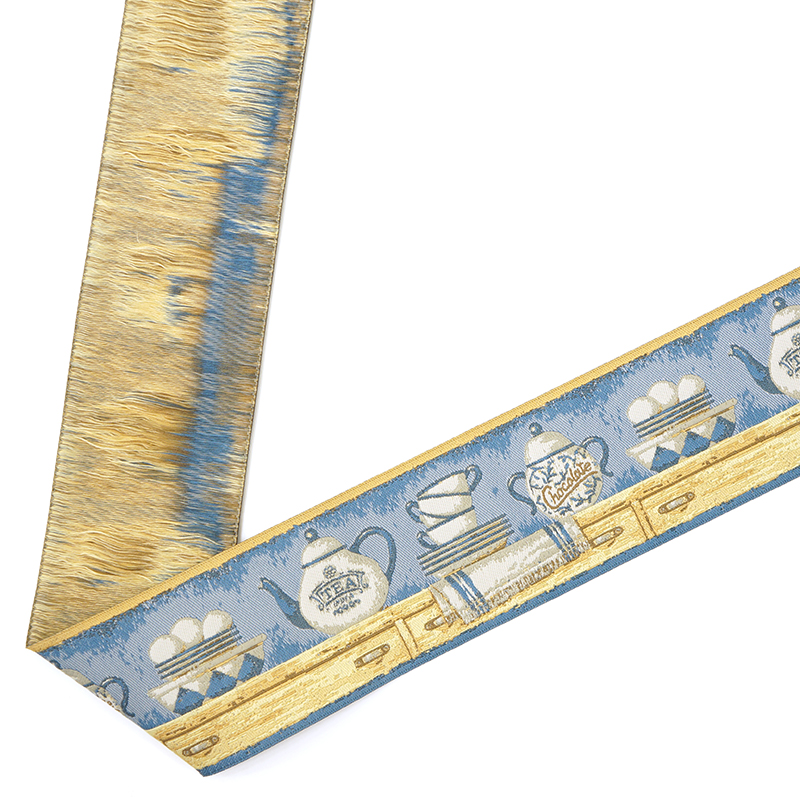 Лента жаккард прочна и долговечна, слабо растягивается, устойчива к истиранию, не линяет. Своеобразный рельефный рисунок сложного переплетения на плотной ткани напоминает гобелен. Стирка желательна при невысоких температурах (+30 °С). Крайне нежелательно отбеливать и отжимать, а также сушить под прямыми солнечными лучами. Гладить лучше с изнаночной стороны. Жаккардовые ленты широко используется для отделки штор, одежды, подушек и других творческих проектов