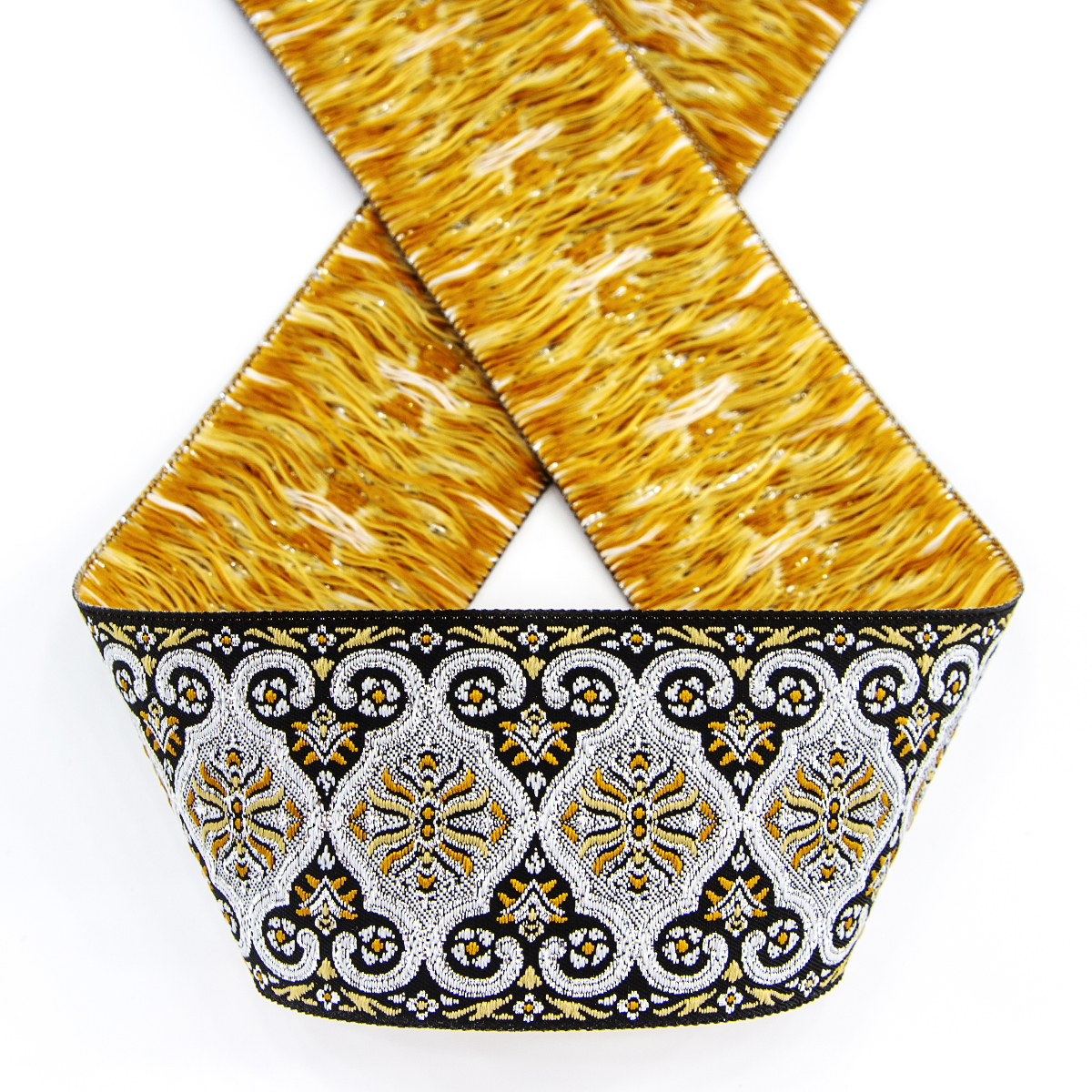 Лента жаккард прочна и долговечна, слабо растягивается, устойчива к истиранию, не линяет. Своеобразный рельефный рисунок сложного переплетения на плотной ткани напоминает гобелен. Стирка желательна при невысоких температурах (+30 °С). Крайне нежелательно отбеливать и отжимать, а также сушить под прямыми солнечными лучами. Гладить лучше с изнаночной стороны. Жаккардовые ленты широко используется для отделки штор, одежды, подушек и других творческих проектов