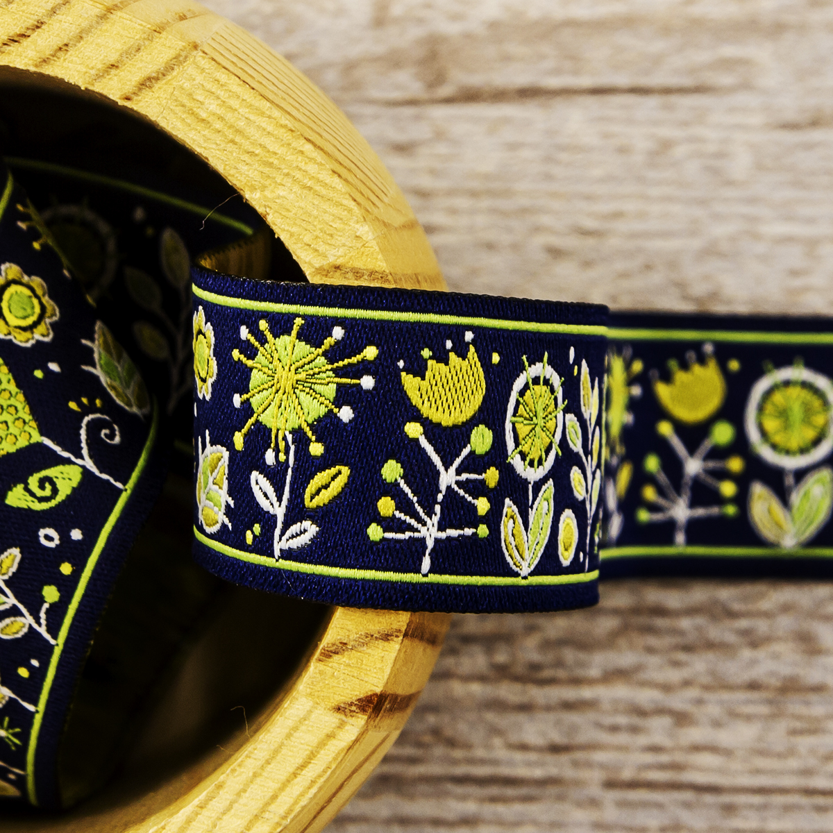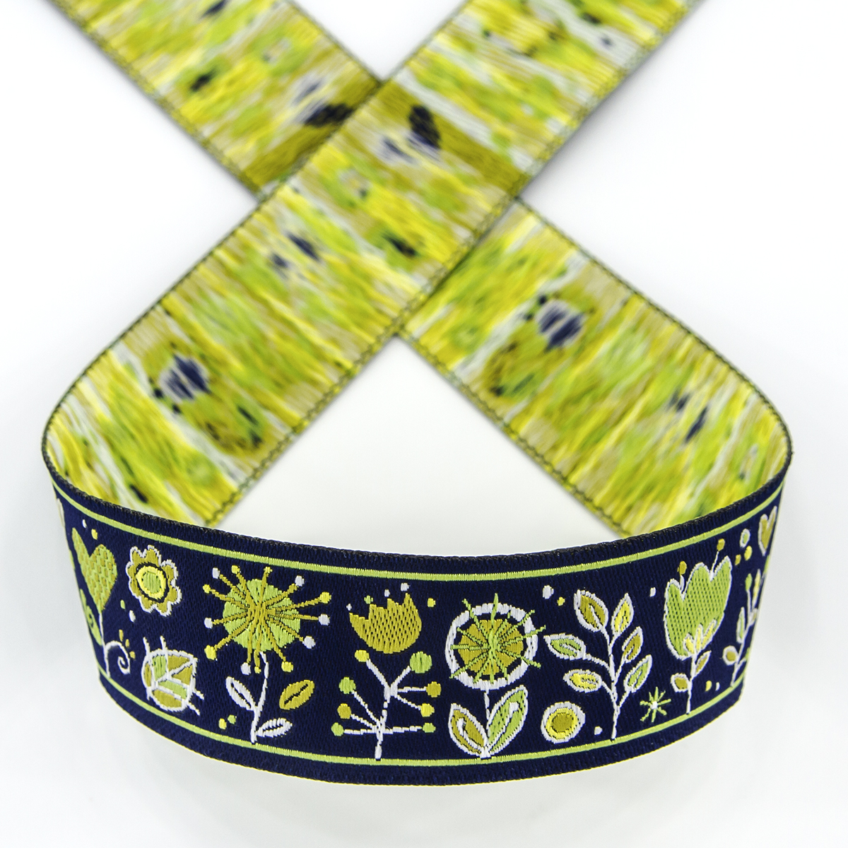 Лента жаккард прочна и долговечна, слабо растягивается, устойчива к истиранию, не линяет. Своеобразный рельефный рисунок сложного переплетения на плотной ткани напоминает гобелен. Стирка желательна при невысоких температурах (+30 °С). Крайне нежелательно отбеливать и отжимать, а также сушить под прямыми солнечными лучами. Гладить лучше с изнаночной стороны. Жаккардовые ленты широко используется для отделки штор, одежды, подушек и других творческих проектов