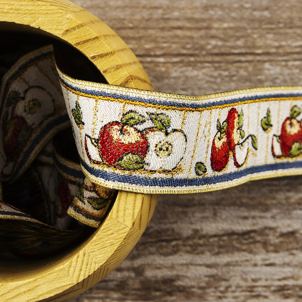 Лента жаккард прочна и долговечна, слабо растягивается, устойчива к истиранию, не линяет. Своеобразный рельефный рисунок сложного переплетения на плотной ткани напоминает гобелен. Стирка желательна при невысоких температурах (+30 °С). Крайне нежелательно отбеливать и отжимать, а также сушить под прямыми солнечными лучами. Гладить лучше с изнаночной стороны. Жаккардовые ленты широко используется для отделки штор, одежды, подушек и других творческих проектов