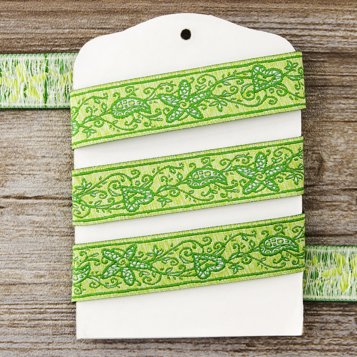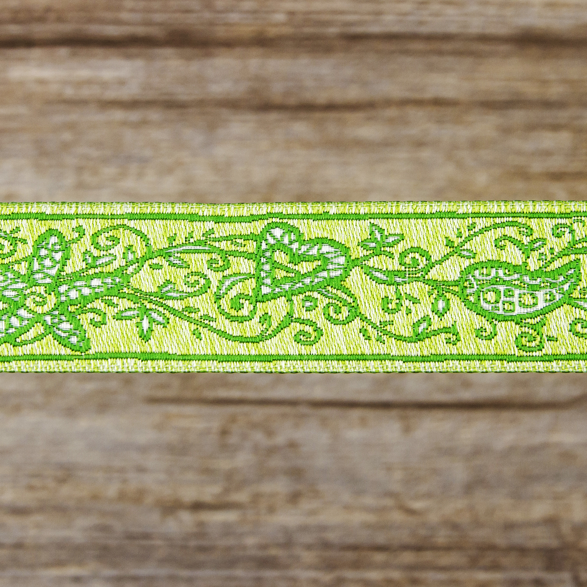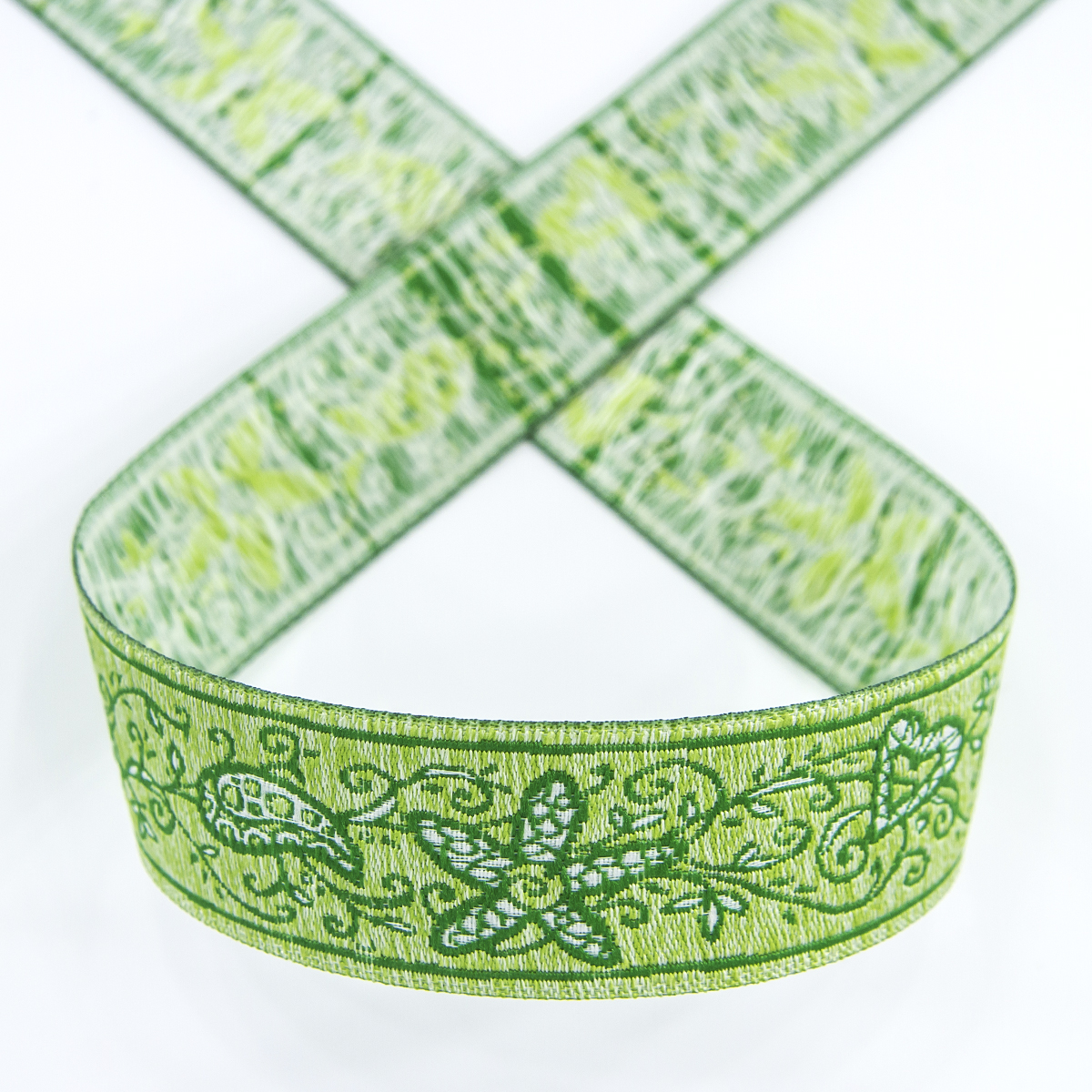 Лента жаккард прочна и долговечна, слабо растягивается, устойчива к истиранию, не линяет. Своеобразный рельефный рисунок сложного переплетения на плотной ткани напоминает гобелен. Стирка желательна при невысоких температурах (+30 °С). Крайне нежелательно отбеливать и отжимать, а также сушить под прямыми солнечными лучами. Гладить лучше с изнаночной стороны. Жаккардовые ленты широко используется для отделки штор, одежды, подушек и других творческих проектов