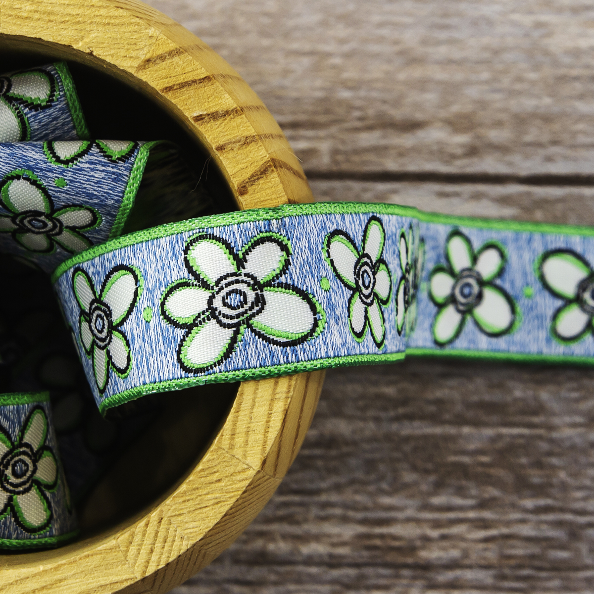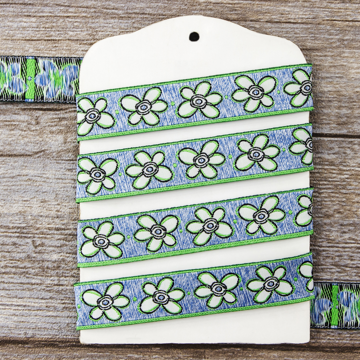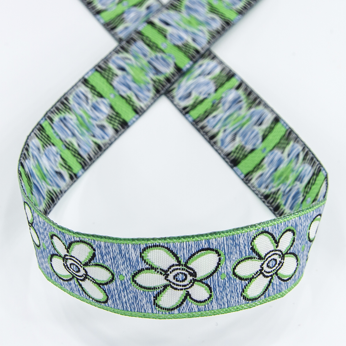 Лента жаккард прочна и долговечна, слабо растягивается, устойчива к истиранию, не линяет. Своеобразный рельефный рисунок сложного переплетения на плотной ткани напоминает гобелен. Стирка желательна при невысоких температурах (+30 °С). Крайне нежелательно отбеливать и отжимать, а также сушить под прямыми солнечными лучами. Гладить лучше с изнаночной стороны. Жаккардовые ленты широко используется для отделки штор, одежды, подушек и других творческих проектов
