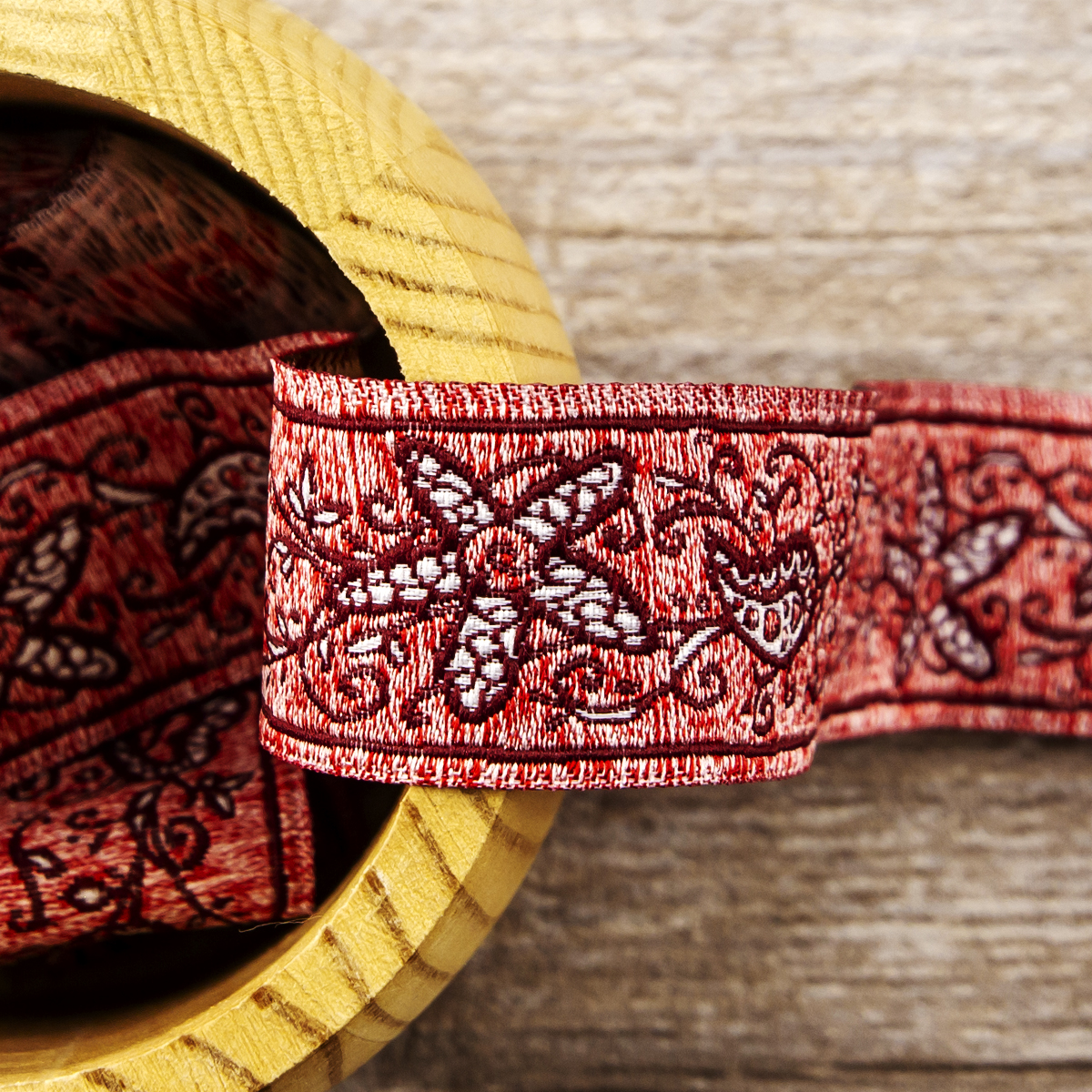 Лента жаккард прочна и долговечна, слабо растягивается, устойчива к истиранию, не линяет. Своеобразный рельефный рисунок сложного переплетения на плотной ткани напоминает гобелен. Стирка желательна при невысоких температурах (+30 °С). Крайне нежелательно отбеливать и отжимать, а также сушить под прямыми солнечными лучами. Гладить лучше с изнаночной стороны. Жаккардовые ленты широко используется для отделки штор, одежды, подушек и других творческих проектов