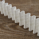 Шторная лента представляет собой плотную и очень прочную полоску из 100% полиэстера с равномерно размещёнными петлями для крючков и продетым вдоль всей тесьмы шнуром для стяжки. Одинарная или двойная протяжка шнура в шахматном порядке обеспечивает разные виды сборки: