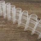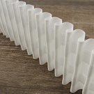 В нашем интернет магазине можно купить белую и прозрачную ленту марки Filmar или Pega. Тонкая прозрачная полоска будет незаметна на невесомом тюле, а широкую тесьму для штор лучше купить для тяжёлых и широких портьер.