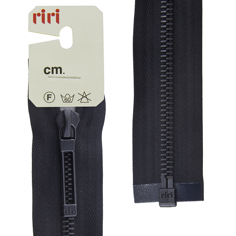 Функция слайдера - автофиксация. Отделка слайдера - тип STAB, на обратной стороне выбит фирменный логотип "riri". Звено и бегунок имеют цвет черного матового металла, нанесённое гальваническим способом. Бегунок riri представляет собой монотело, сопротивление разрыву замка и подвески на замке в 2 раза больше, чем на аналогичных изделиях других производителей! Процесс обработки зубцов для металлических "молний" riri гальванопокрытием предотвращают окисление зубцов.
