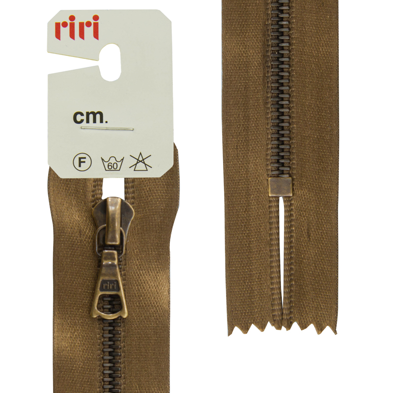 Функция слайдера - автофиксация Отделка слайдера - тип FLASH, на обратной стороне выбит фирменный логотип "riri" Звено и бегунок имеют покрытие цвета состаренной меди, нанесённое гальванопокрытием. Бегунок RIRI представляет собой монотело, сопротивление разрыву замка и подвески на замке в 2 раза больше, чем на аналогичных изделиях других производителей! Процесс обработки зубцов для металлических "молний" RIRI гальванопокрытием предотвращают окисление зубцов. На каждой молнии с обратной стороны нанесен номер цвета и длина.
