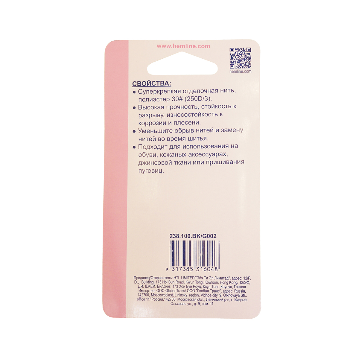 Нить отделочная HEMLINE, 100 м - 100% особо прочные полиэфирные нити, толщина 30. Высокая прочность, стойкость к разрыву и хорошая износостойкость. Уменьшите обрыв нитей и замену нитей во время шитья. Подходит для использования на обуви, кожаных аксессуарах, джинсовой ткани или пришивания пуговиц.