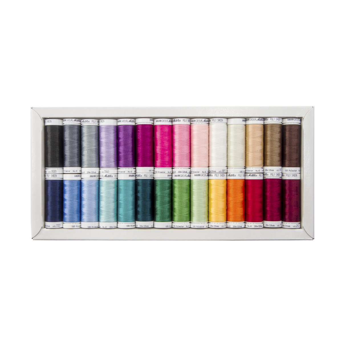 В набор входят 28 катушек нитей Poly Sheen №40, намотка 200 м. Нить Poly Sheen предназначена для машинной вышивки, изготовления декоративных и вышивальных строчек на швейной машине. Нить Poly Sheen с технологией производства трилобаль иммет структуру шелка и дополнительный блеск благодаря треугольному сечению волокон. Нить мягкая, пластичная, стойкая к эксплуатационным воздействиям и к стирке. Стирать готовое изделие при температуре не выше 60 градусов, можно отбеливать, гладить при среднем нагреве утюга не выше 150 градусов, химчистка кроме трихлорэтилена.