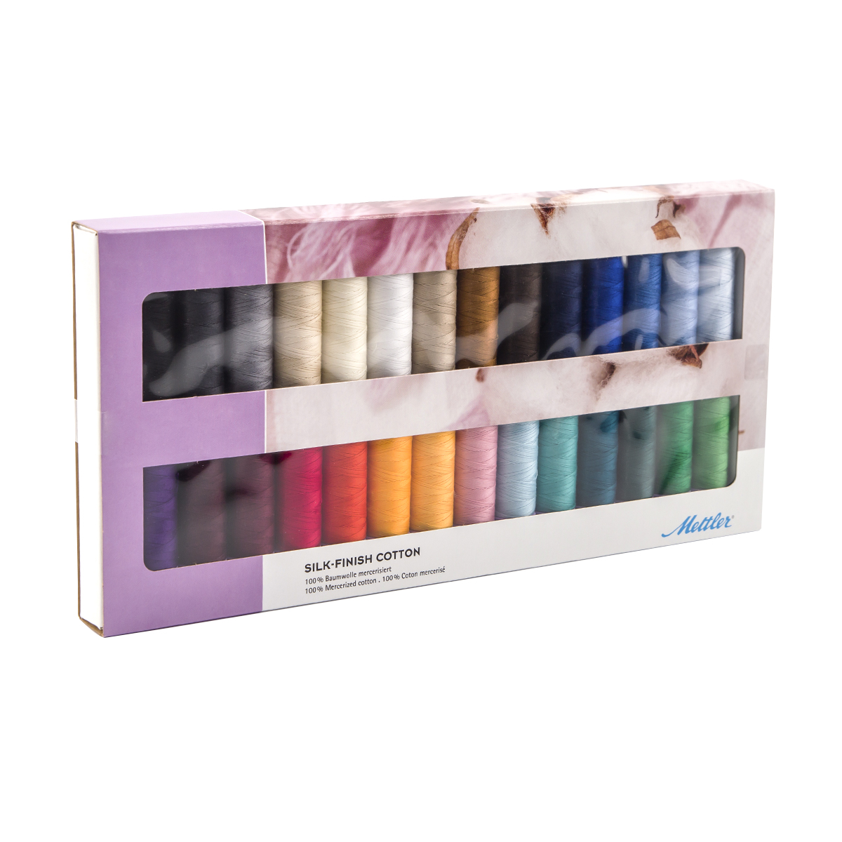 В набор входят 28 катушек нитей Silk Finish Cotton № 50, состав 100% длинноволокнистый египетский хлопок. Технология двойной мерсеризации позволила создала нить с благородным блеском шелка, мягкую, пластичную, прочную, с высокой термоустойчивостью и низким коэффициентом усадки. Нити предназначены для машинной стежки (квилтинга), выполнения стачивающих, отделочных, декоративных и вышивальных строчек, для машинной вышивки. Особенно рекомендуется нить Silk Finish Cotton для хлопчатобумажных тканей. Рекомендации по уходу: стирка при температуре не выше 60 градусов, не отбеливать, допустимо гладить при высокой температуре до 200 градусов, допустима химчистка кроме трихлорэтилена.