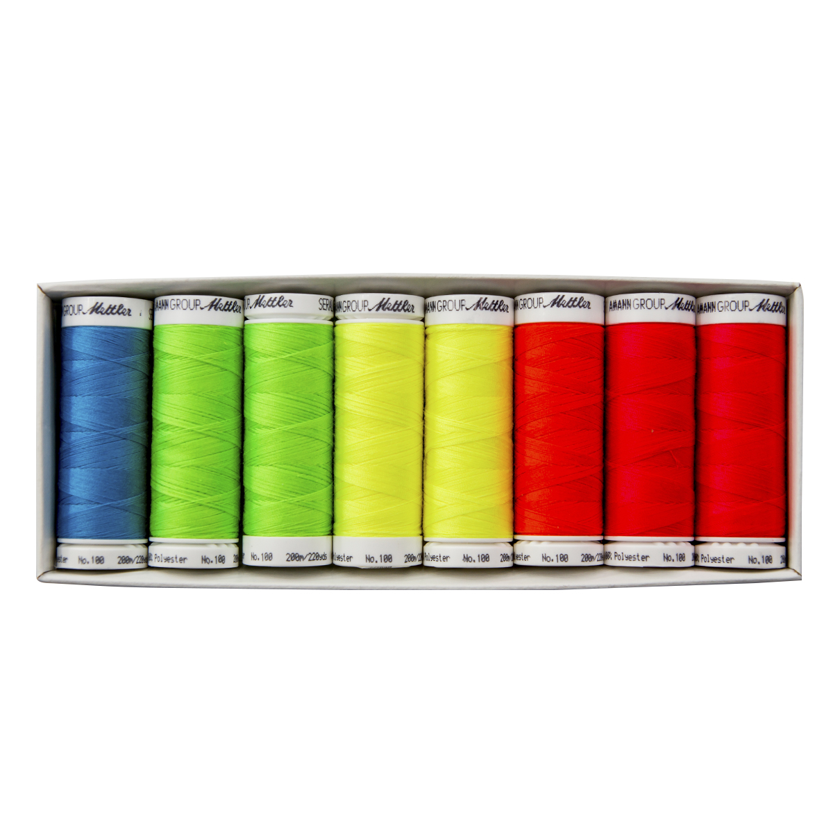 Универсальная швейная нить SERALON комплект из 8 катушек. Устойчивы к разрыву, универсал среди швейных ниток в практическом наборе! Упаковка SE8Neon-Kit включает в себя 8 катушек (цвета 2 x 2730, 1399, 2 x 2643, 1428, 2 x 1426).