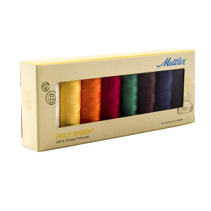 Набор с нитками Poly Sheen в подарочной упаковке, 8 катушек. POLY SHEEN - это прочная, декоративная, блестящая швейная нить, которой не только замечательно вышивать, но она универсальна благодаря своей сверхпрочной и устойчивой к истиранию текстуре. Красочные декоративные швы выигрышно смотрятся с швейной ниткой на спортивной и повседневной одежде, джинсах, детской одежде. Набор PS8-Kit содержит 8 катушек по 200 м прекрасных цветов.