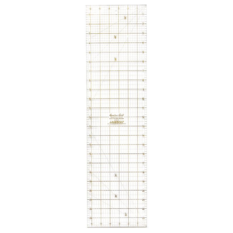 Линейка для пэчворка - самая популярная линейка для кроя большинства деталей в пэчворке. Идеальна для кроя широких отрезов. Имеется разметка углов: 45* по центру - удобно кроить косую бейку и на обеих концах разметка 30* и 60*. Градация в дюймах, нанесена разметка на 1/2", 1/4", 1/8", шаг 1/8". В линейке отмечен припуск 1/4". Размер динейки: 60,96 х 16,51 см / 24" х 6 1/2". Цвет линейки: прозрачный с красно-черной разметкой.