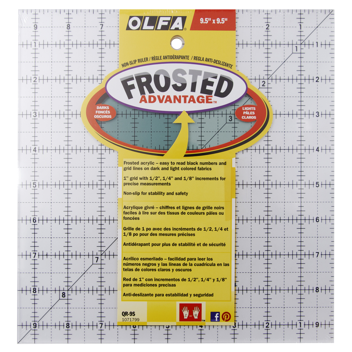 —Линейка для пэчворка "Frosted", градация в дюймах, квадрат 9 х 9". Арт QR-9S