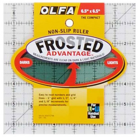 С нижней части линейки нанесено матовое напыление "Frost", она позволяет четко видеть разметку на тканях и предотвращает скольжение при раскрое, нанесена разметка диагональ. Рекомендуем для выравнивания блоков.