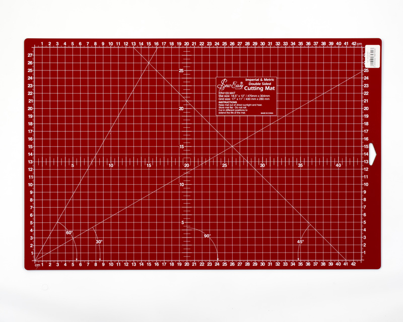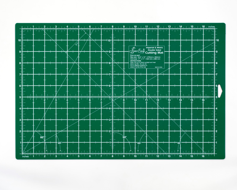 Мат для раскройного ножа двустронний, цвет со стороны дюймовой разметки зеленый, сантиметровой - красный, 430 мм х 280 мм (17"x 11"). Берегите мат от прямых солнечных лучей и нагревания. Не скручивайте в рулон.
