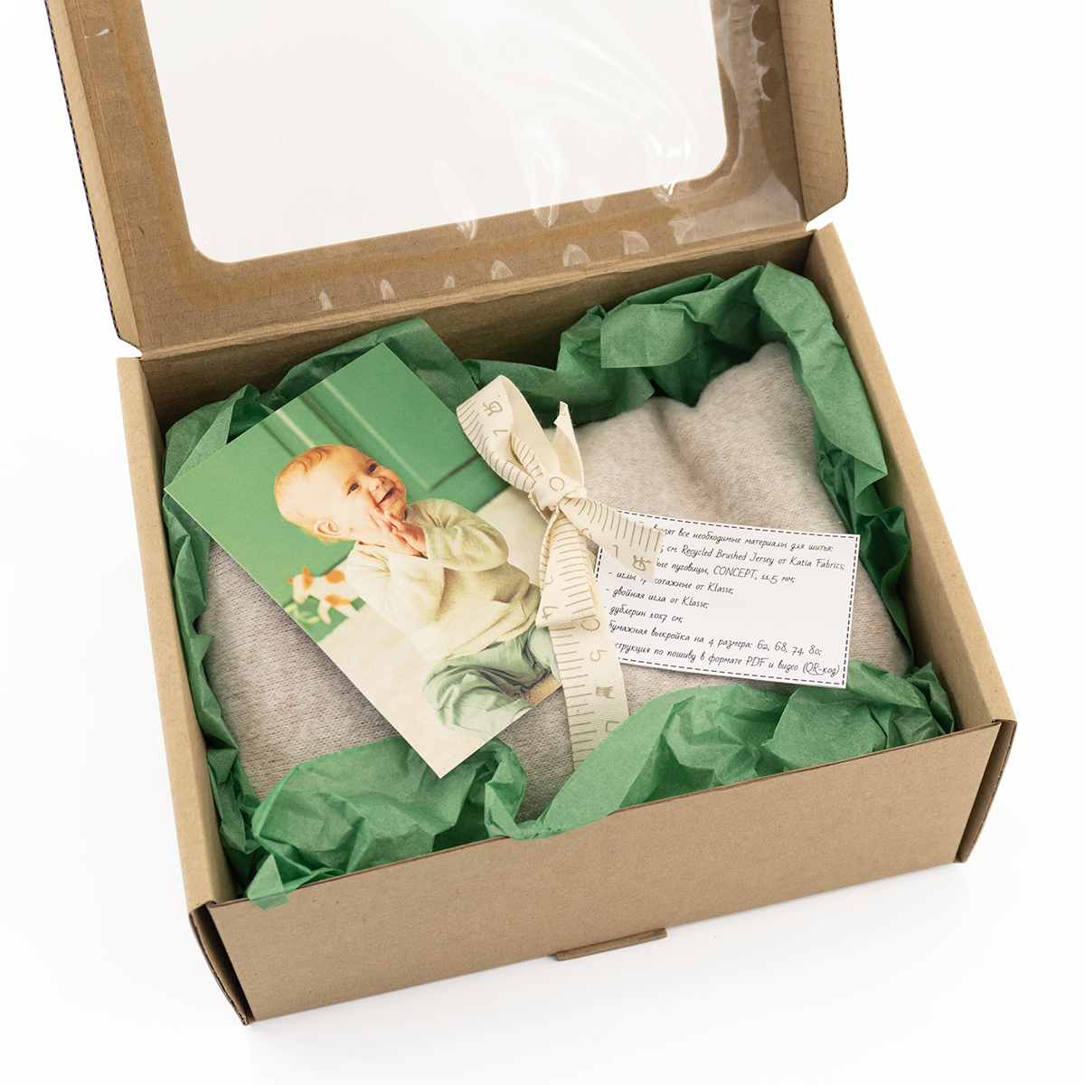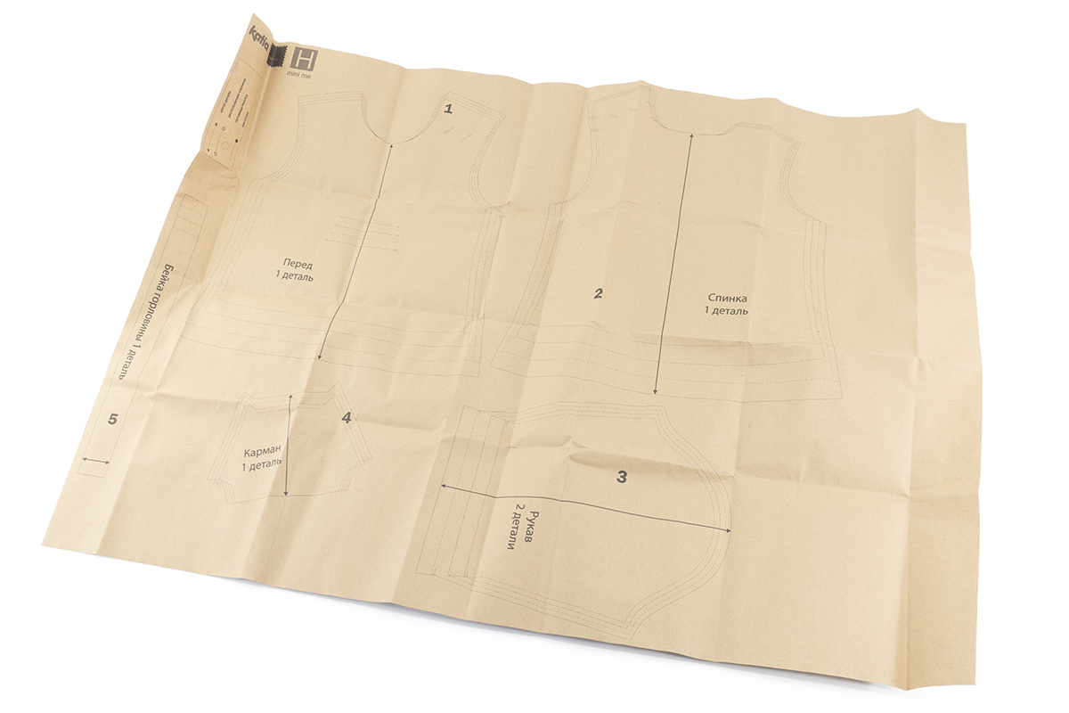 - бумажная выкройка на 4 размера: 62, 68, 74, 80;