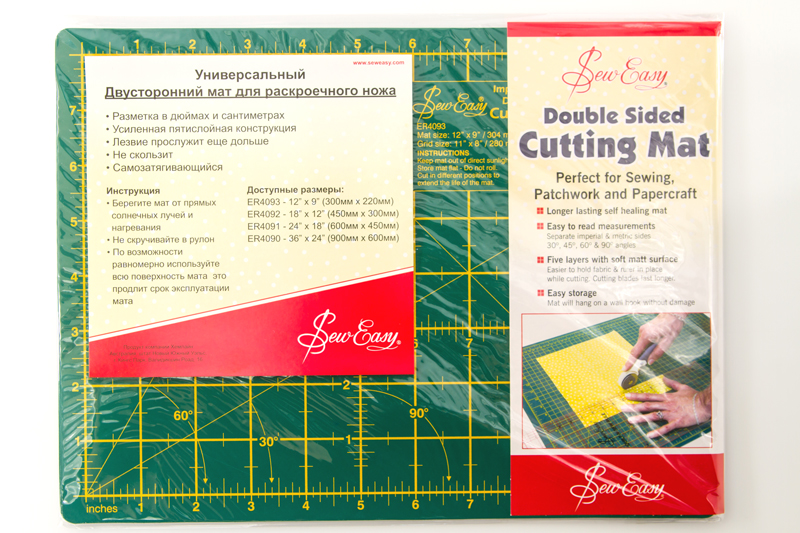 Мат выполняет роль обязательной подложки для раскроя тканей при помощи раскройного роликового ножа. Мат такого размера можем использовать для подрезки припусков в процессе сшивания блоков, вырезания небольших деталей кроя. Также рекомендуем использовать мат как защитную подложку для рукодельных работ в техниках декупаж и скрапбукинг.