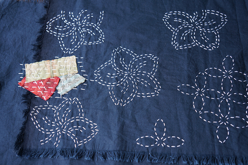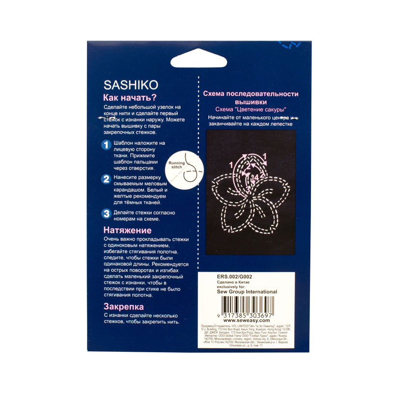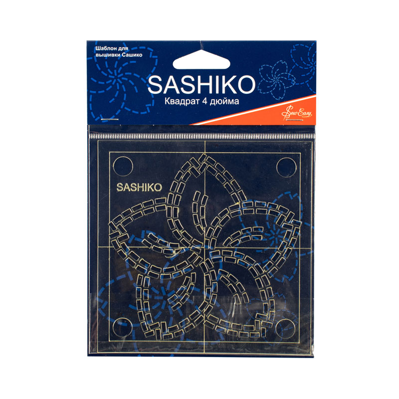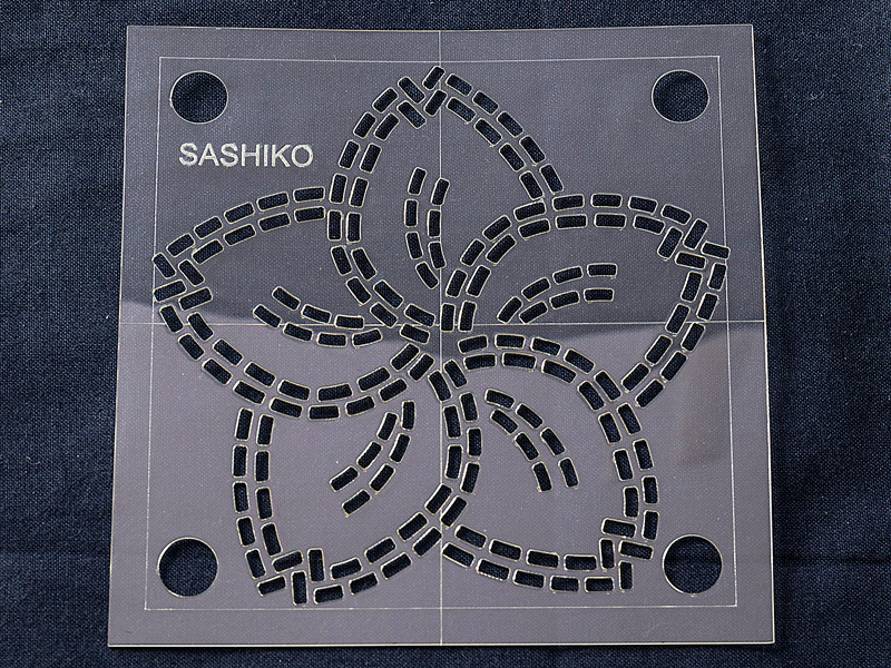 Шаблон предназначен для нанесения разметки рисунка на ткань для вышивки в технике сашико. Она подразумевает полное заполнение блока или фрагмента повторяющимися каноническими узорами с точно выдержанной длиной стежка. Шаблон переставляете, разметку повторяете, стыковку проверяете угловыми точками. Классическим вариантом для сашико является использование ткани темно-синего цвета и фактурных белых хлопковых нитей.