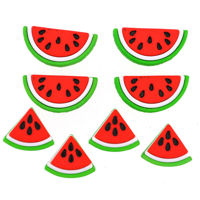 Набор декоративных элементов включает в себя несколько фигурок из пластика одного или разных размеров. Миниатюрные фигурки в каждом наборе объединены одной темой. Это может быть: школа, цветы, животные, море, фрукты, детские стилизованные зверушки, феи, бабочки, единорожки, мороженое и т.д. Количество элементов в каждом наборе варьируется от 3-х до 34-х штук, и их можно либо пришить (если есть отверстия или ножка для пришивания как у пуговиц), либо приклеить (если отверстий и ножки не имеется), либо подвесить (если есть одно отверстие для подвеса). Забавные декоративные фигурки подойдут для любого вида творчества: шитья, изготовления кукол, скрапбукинга, для оформления вязаной одежды. С их помощью вы сможете украсить любой творческий проект - альбом, скрап-страничку, открытку, сумочку, детскую одежду и вышивку.