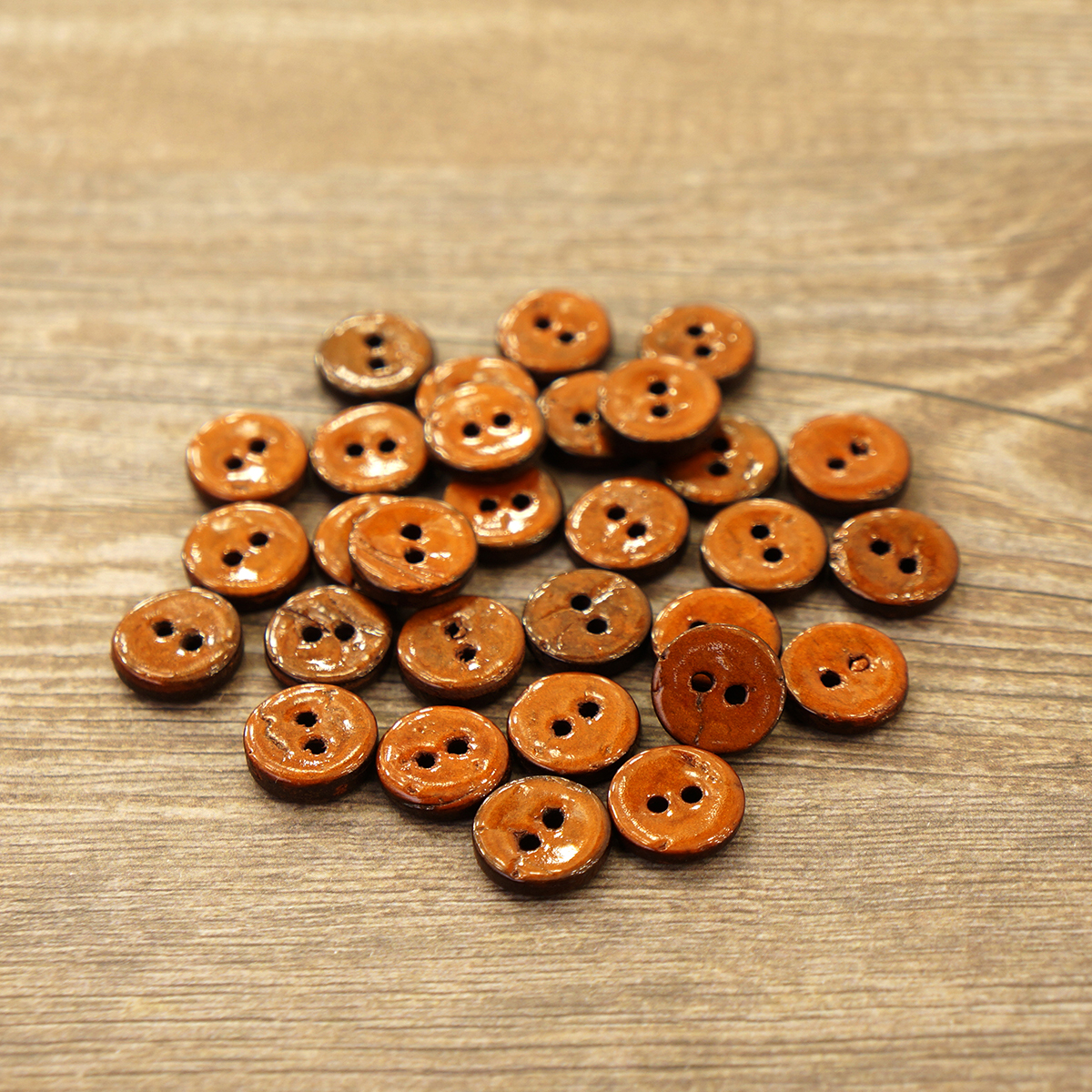 Пуговицы -с двумя отверстиями для прокола, могут быть разных диаметров: 11, 15, 20, 25 и 30 мм. Укомплектованы по 10, 15, 20, 30 штук в зависимости от диаметра.