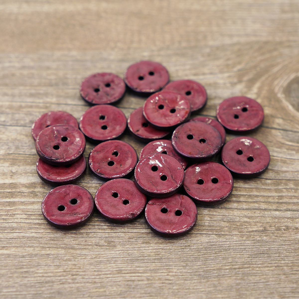 Пуговицы -с двумя отверстиями для прокола, могут быть разных диаметров: 11, 15, 20, 25 и 30 мм. Укомплектованы по 10, 15, 20, 30 штук в зависимости от диаметра.