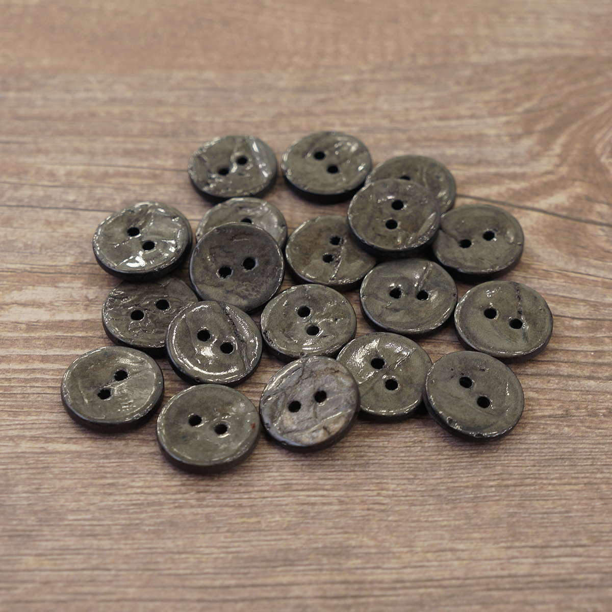 Пуговицы CONCEPT из натурального кокоса изготовлены из скорлупы кокосового ореха. Это необычный продукт. Пуговицы из кокоса отличаются от обычных пуговиц своей экологичностью, ведь пуговки изготовлены из настоящего фрукта. Технология изготовления самих пуговиц уникальна: основа пуговок полируется до блеска и отбеливается, затем на пуговицы распыляют смолу, которая создает перламутровый эффект с металлическим блеском, и только потом окрашивают водным красителем.