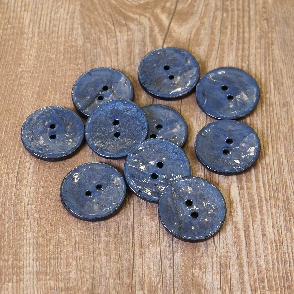 Пуговицы -с двумя отверстиями для прокола, могут быть разных диаметров: 11, 15, 20, 25 и 30 мм. Укомплектованы по 10, 15, 20, 30 штук в зависимости от диаметра.